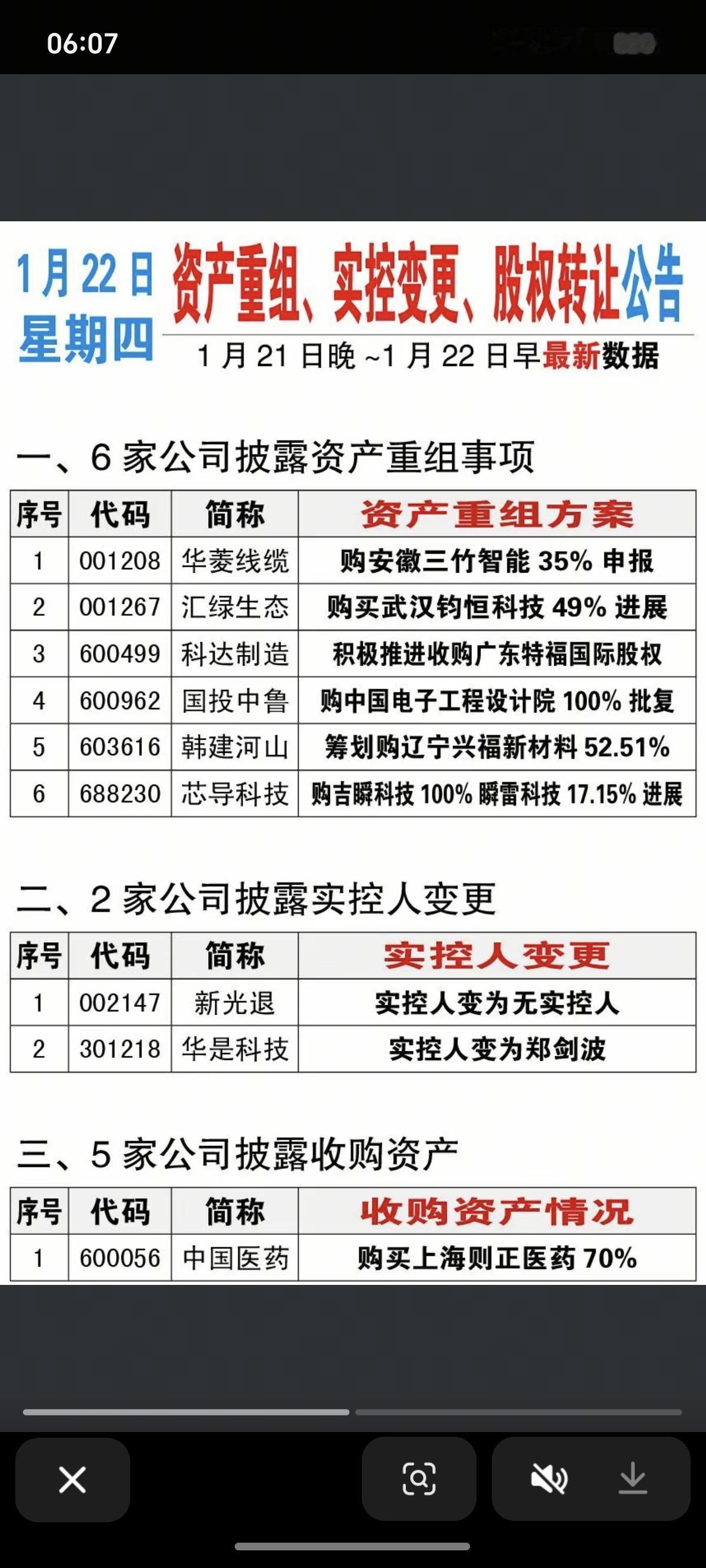 1.22周四 资产重组、实控人变更、股权转让公告! 一、2家公司实控人变更 二、6家公司资产重组计划 三、3家股权转让, 四、5家收购资产,2家出售资产