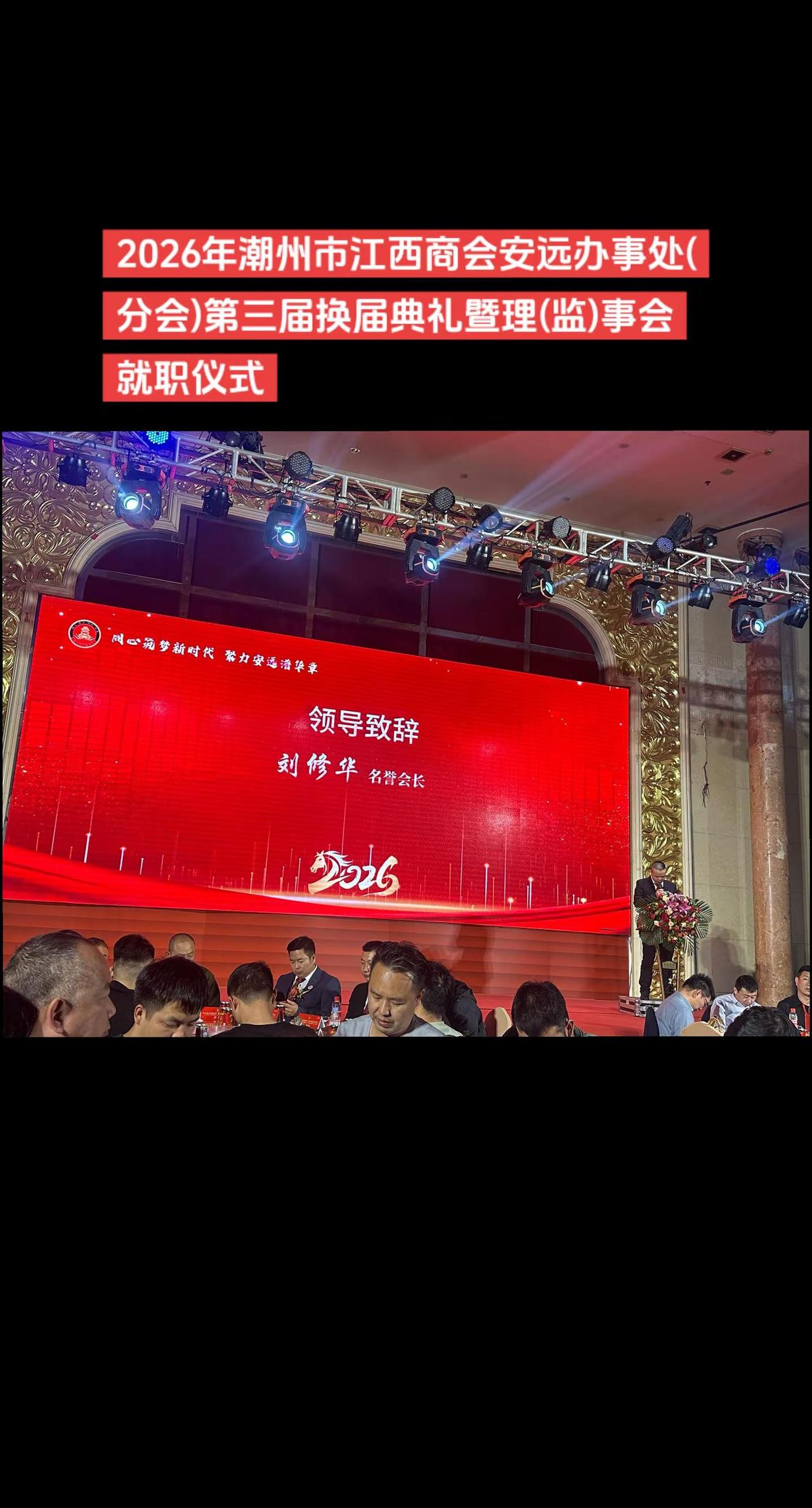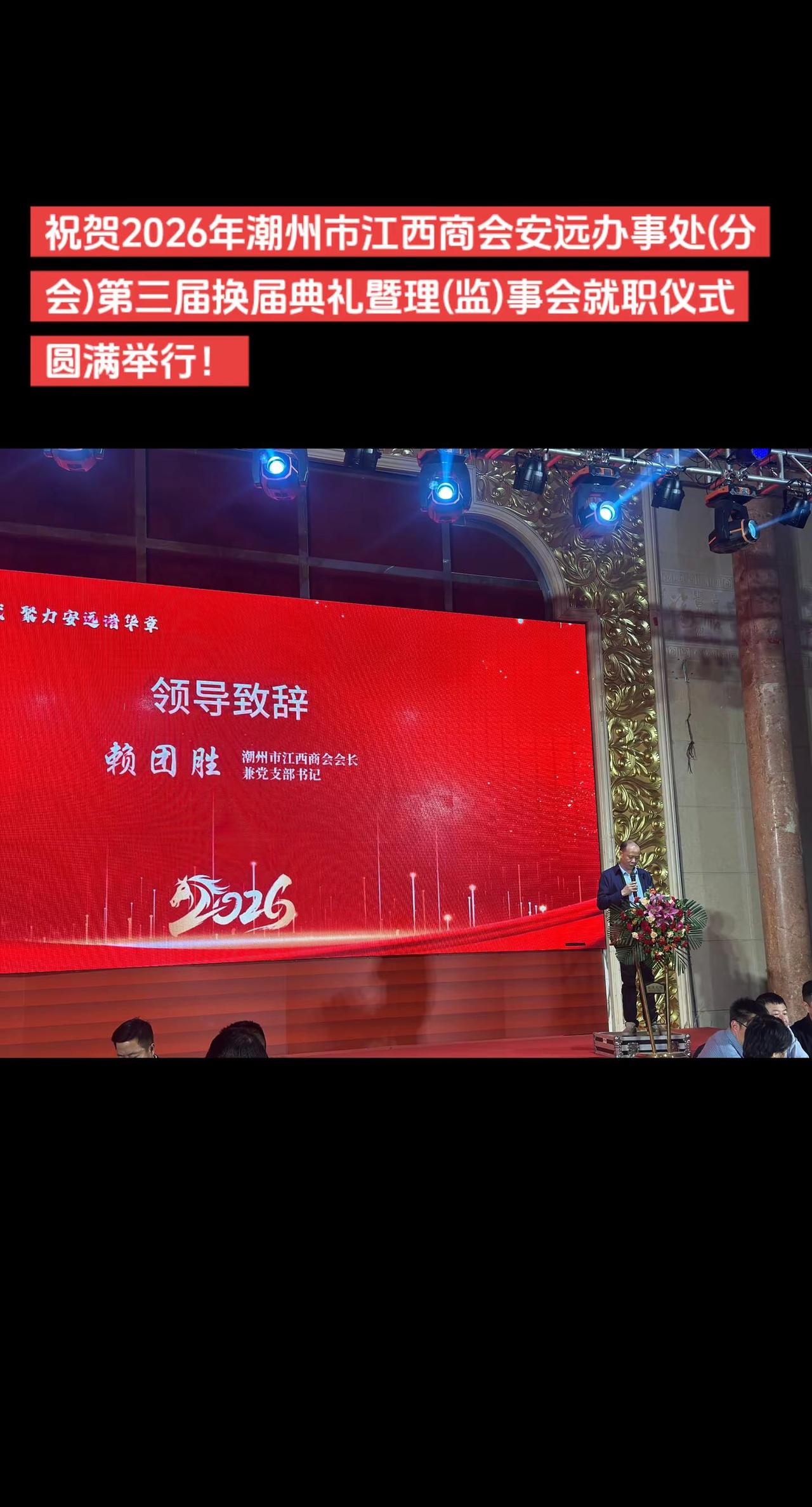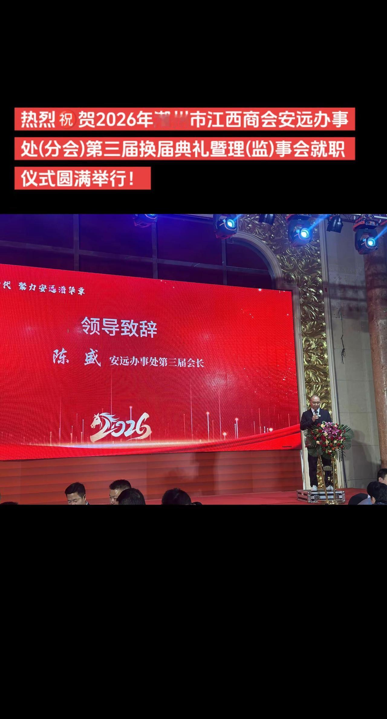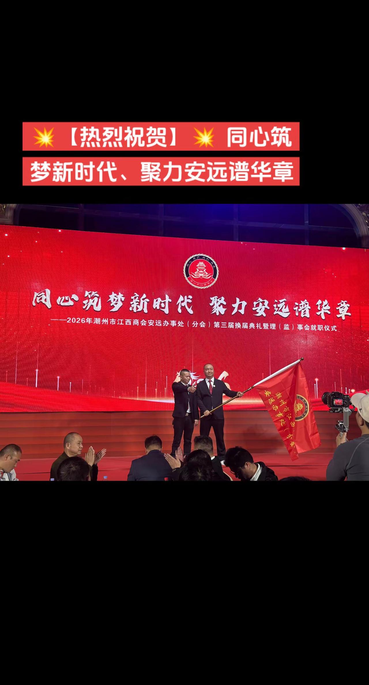 潮州市江西商会安远办事处年会。💥【热烈祝贺】💥同心筑梦新时代、聚力安远谱华章,热烈㊗️贺2026年潮州市江西商会安远办事处(分会)第三届换届典礼暨理(监)事会就职仪式圆满举行!舞台现场 年会颁奖 领奖 舞台现场