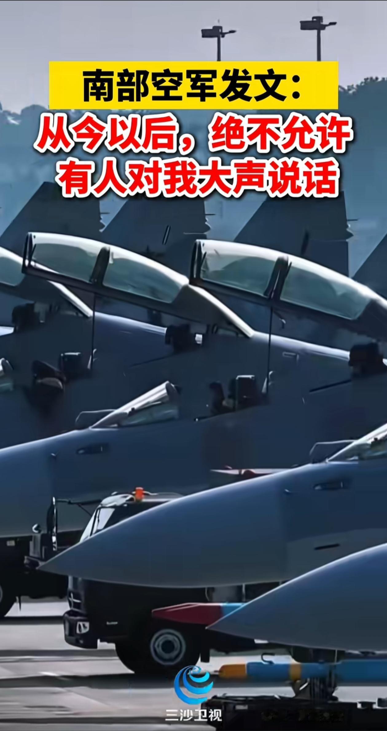 南部空军发文真是太霸气了“从今以后,绝不允许有人对我大声说话”。听着振奋人心,这是强大军事实力的展示,这是捍卫祖国主权的坚定决心,这是对豺狼虎豹的严重警告,这是来自正义使命的底气,相信你们一定会把祖国的每一寸海疆空域守卫好。