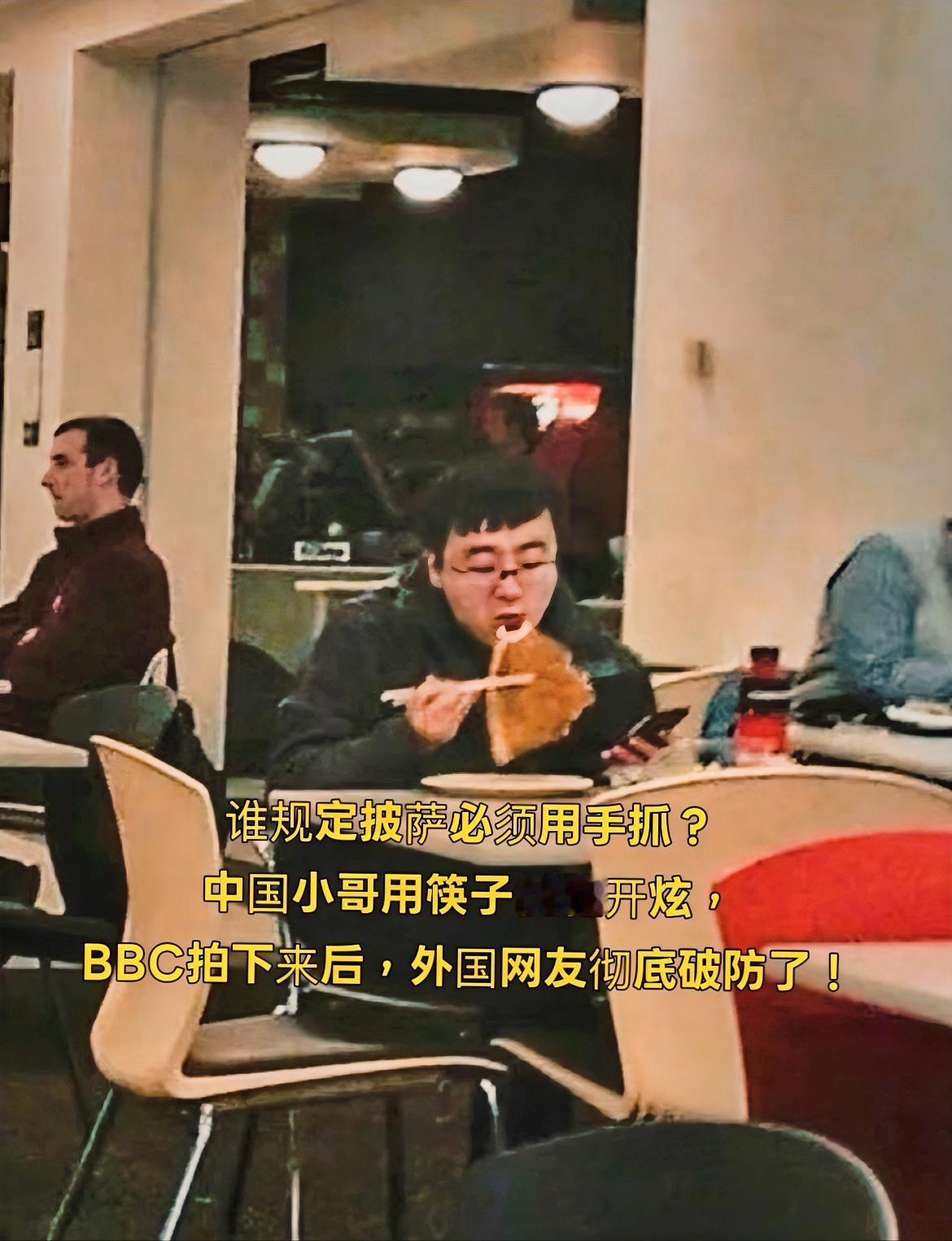 筷子夹披萨火了! 别笑,这才是高级文明的选择͏ 。 中国顾客在法国餐厅用筷子夹披萨,照片传到BBC直接炸锅! 外网吵翻了天,有人觉得“不正宗”,有人却被这波操作圈粉。 其实真没必要大惊小怪能夹只是不可子筷 !中餐,它本身就是人类进化出来的高级工具。 别以为刀叉才是“西餐标配”,:中锤实就早古考 国五千多年前就用刀叉,比西方普及早了几千年! 后来为啥被筷子淘汰? 因为咱中餐越做越精细,小块肉、细菜、汤羹,用筷子夹着又稳又灵,刀叉反而显得笨重又多余。 筷子天圆地方,一阴一阳,夹取之间藏着“以动取静、天地人和”的智慧,不是简单的餐具,更是文化的沉淀。 用它夹披萨,不是违和,是把高级工具用在了对的地方。 说到底,餐具没有高低, 好用才是王道!!! 你平时吃西餐会用筷子吗? 评论区聊聊~[呲牙]