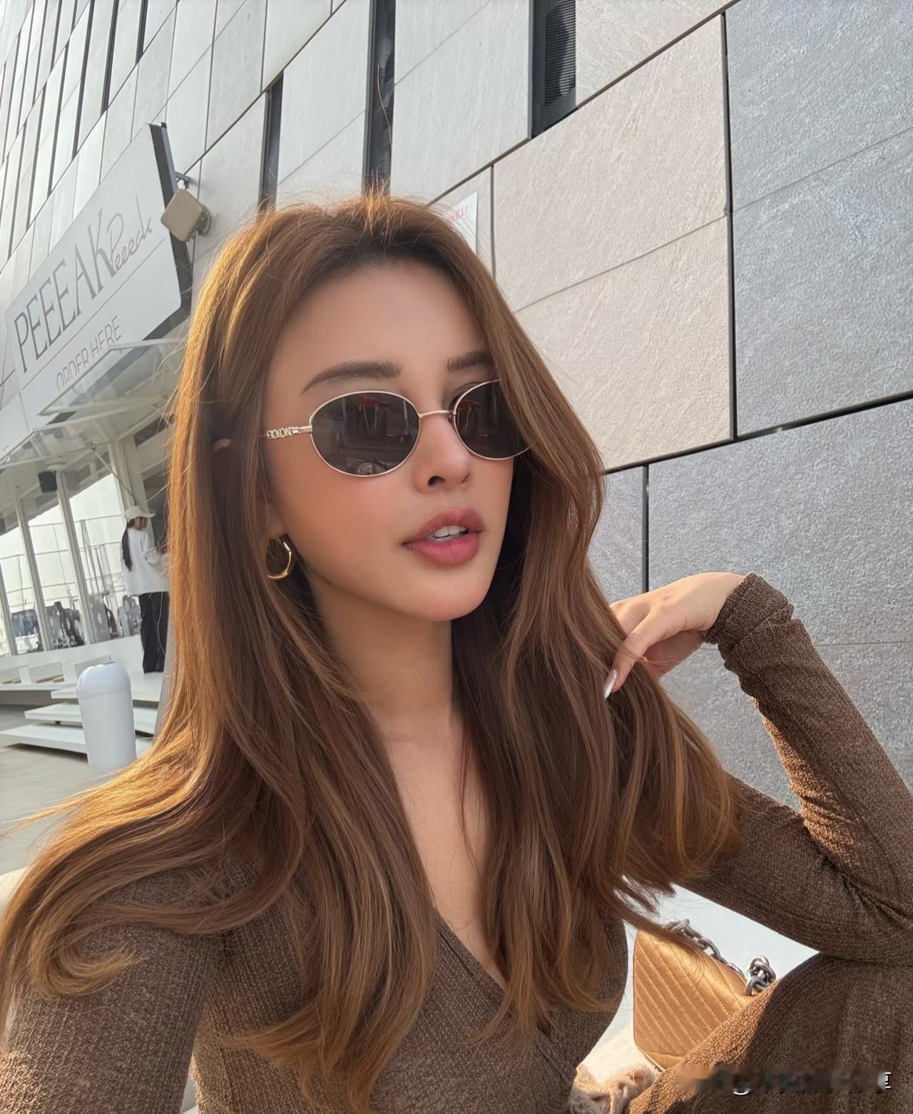 晒图笔记大赛东亚年轻女性,棕色长发,身穿米色短款皮夹克、白色内搭、牛仔短裤,背着