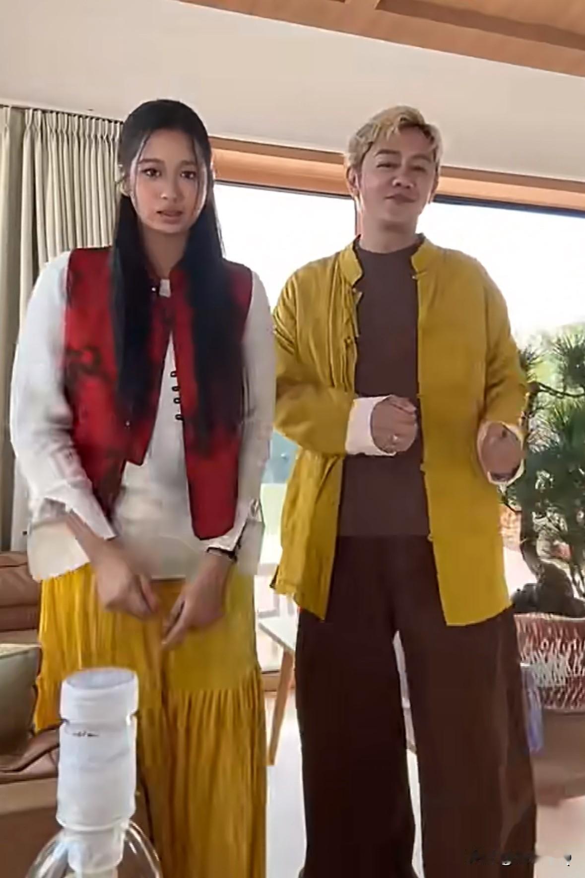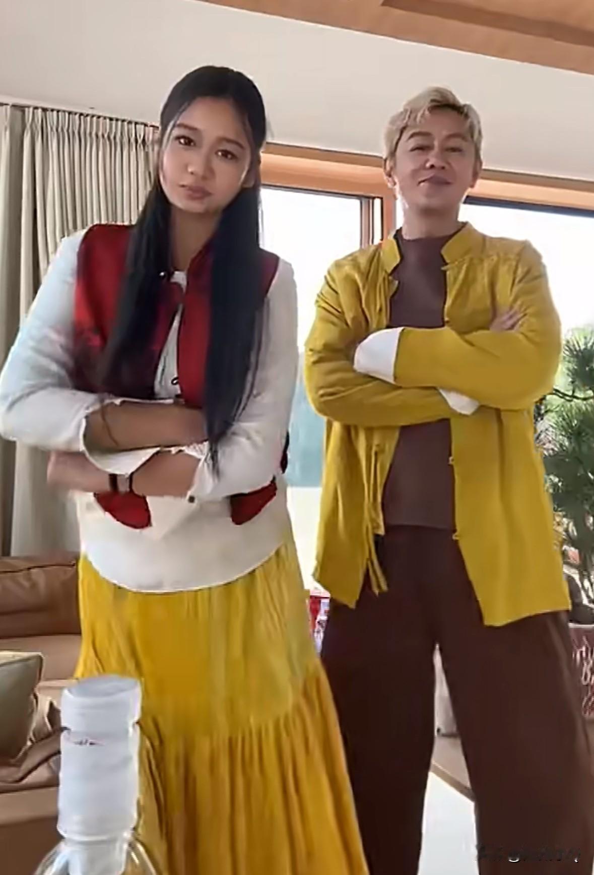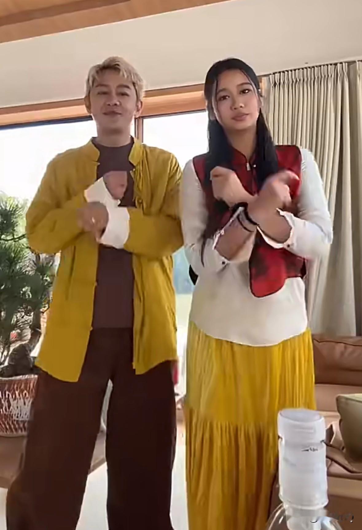 陈浩民和大女儿陈雅薷合拍跳舞,陈雅薷人高马大,脸偏东南亚那边的长相,还有一点点像Lisa。