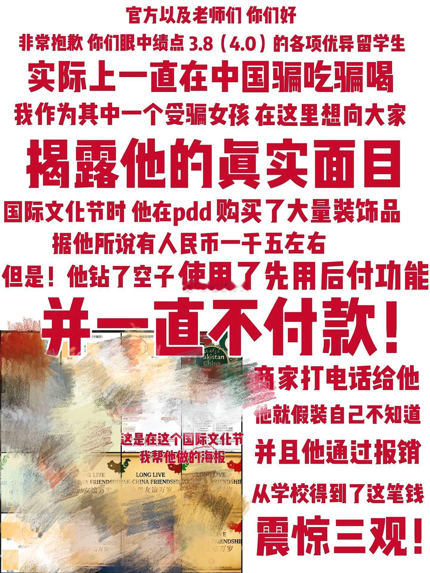 网友爆料,温州医科大学巴基斯坦留学生骗吃骟喝骗穿,无缝衔接,同时约会无数女生,如果你在温州看到这位留学生请帮帮我!以为傍上洋大人,结果洋大人纯白嫖!