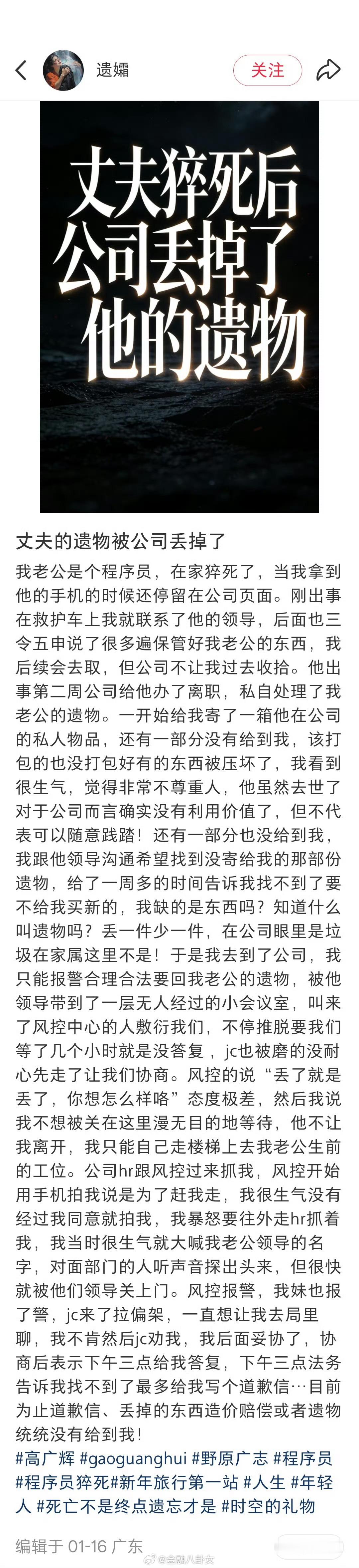 32岁程序员周末晕倒后猝死:抢救期间曾被拉入工作群,死亡后还收到工作消息……妻子曾多次九十点催程序员丈夫下班
