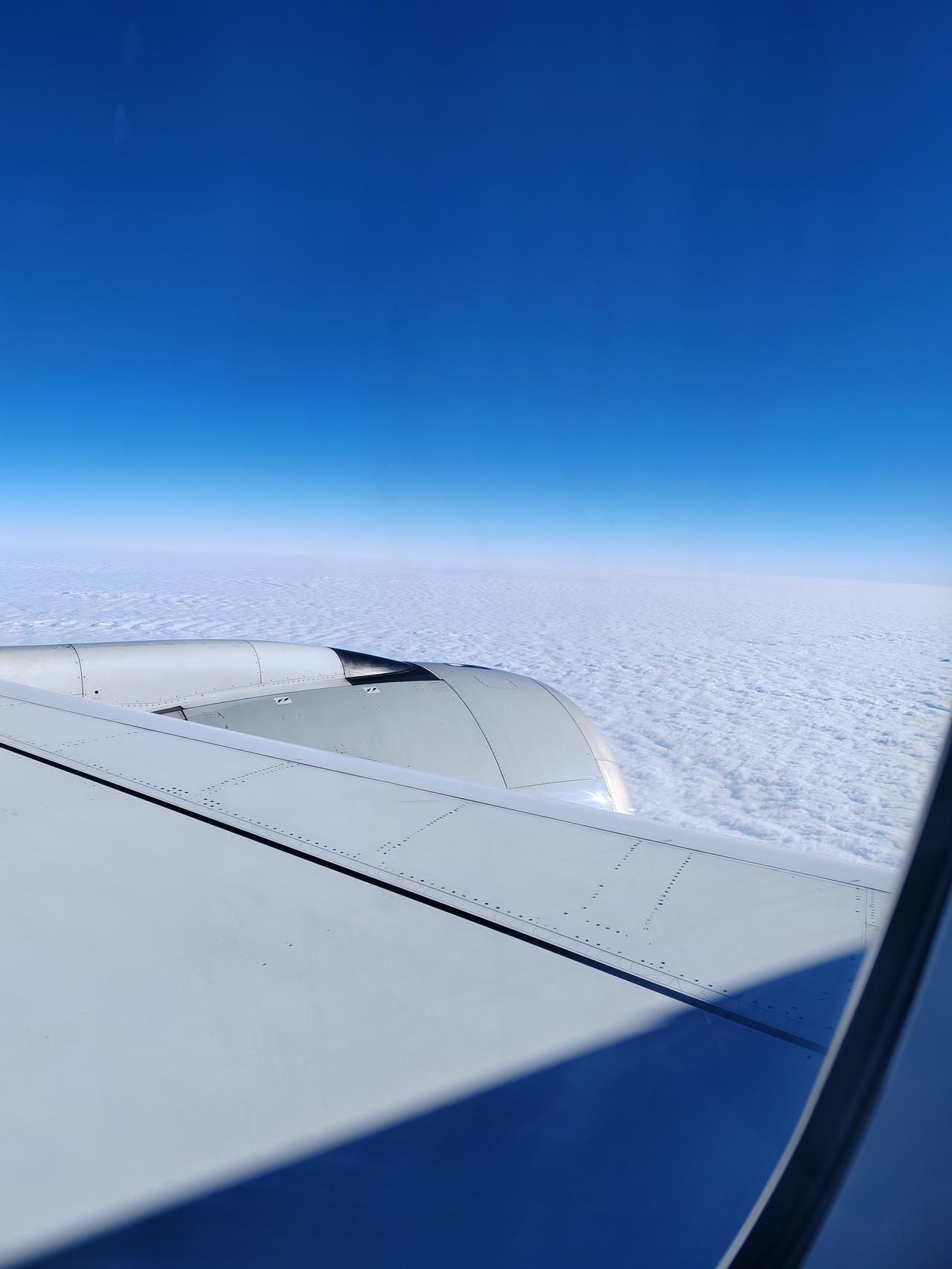 飞在万米上,我在云端行。舷窗外是凝固的海,时间仿佛也折了翼。阳光烫穿云层,在机翼