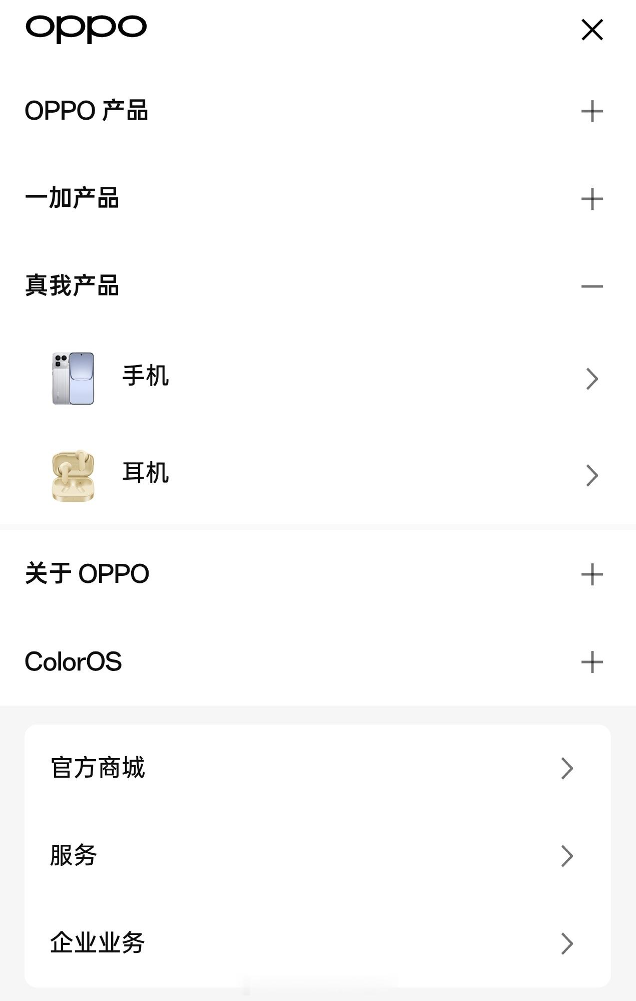 真我品牌产品正式列入 OPPO 官网产品列表。
