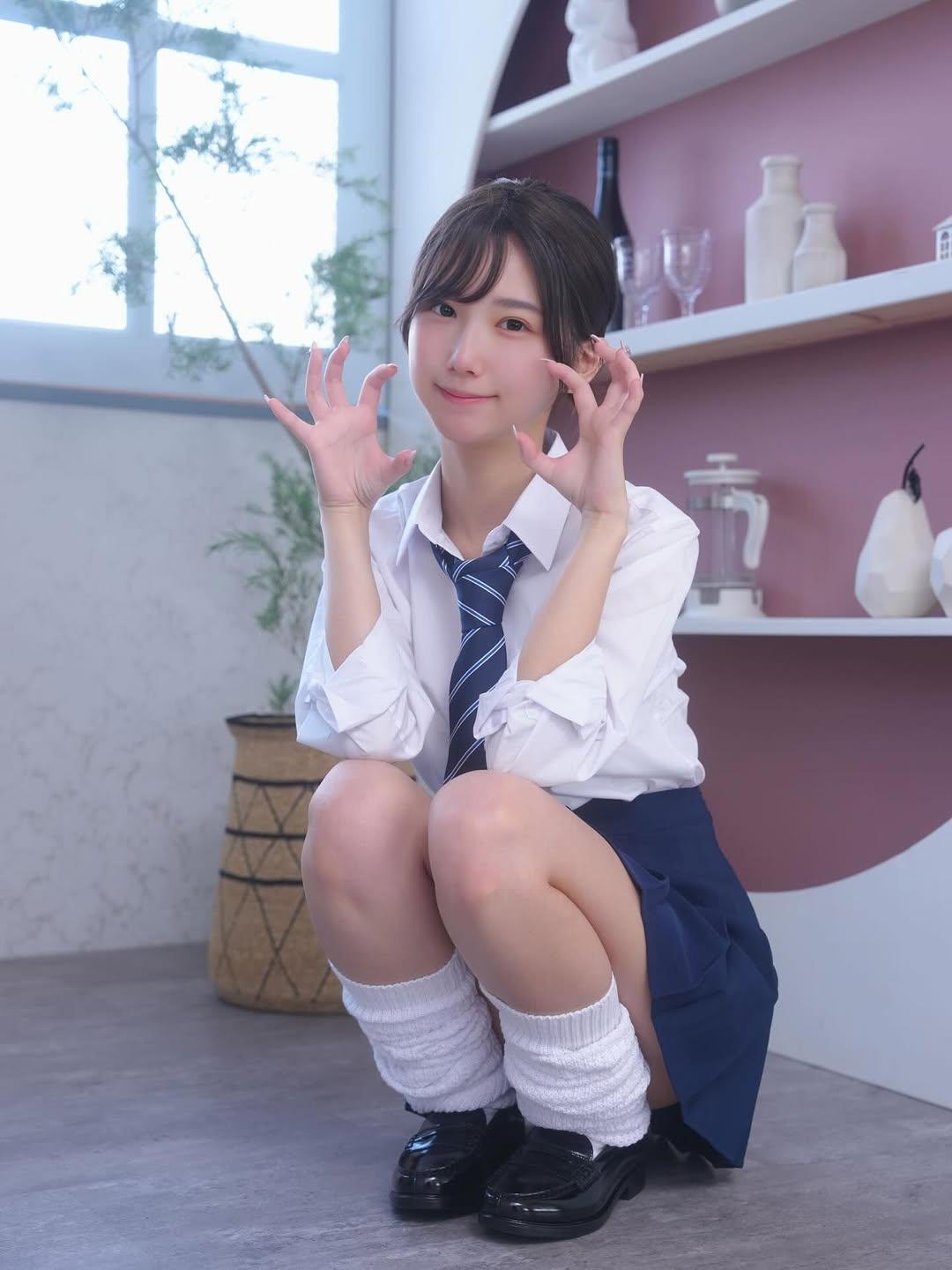 青春洋溢的校园风,少女甜美笑容,可爱制服,清新背景。