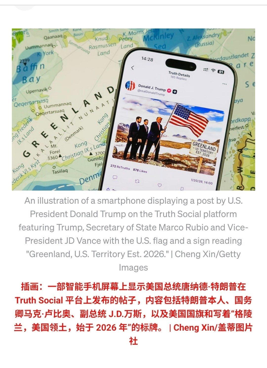 特朗普发登上格陵兰岛图! 美国总统特朗普在社交媒体上发布图片,他手拿美国国旗登上格陵兰岛,身后站着美国副总统万斯和国务卿鲁比奥,旁边指示牌上写着“格陵兰岛2026年成为美国领土”。 川宝真是美国最会整活儿的总统,他想成为美国版秦始皇,开疆扩土,统一六国。 这些强盗演都懒得演了,以前还各种媒体美化找借口,现在是彻底不装了。