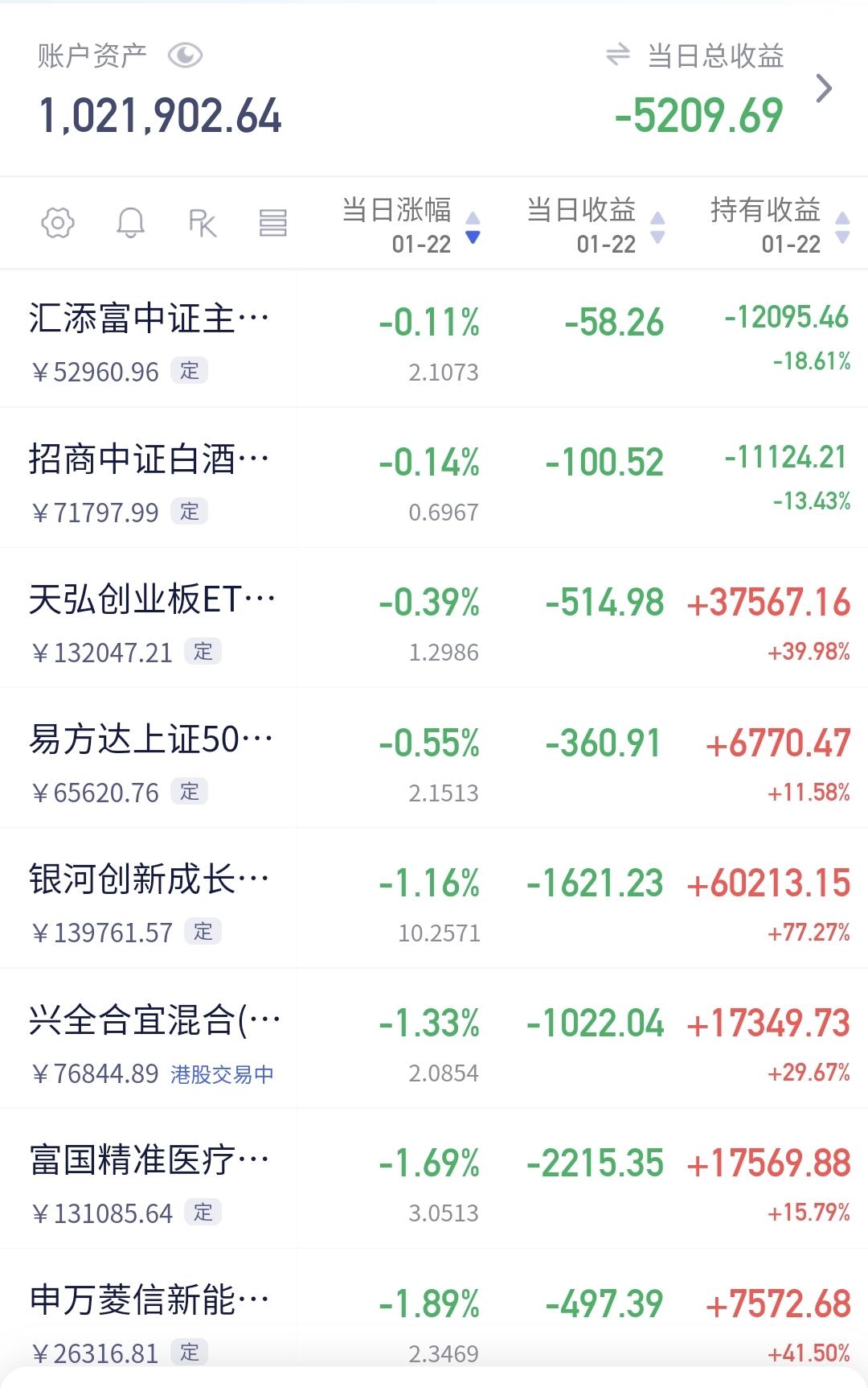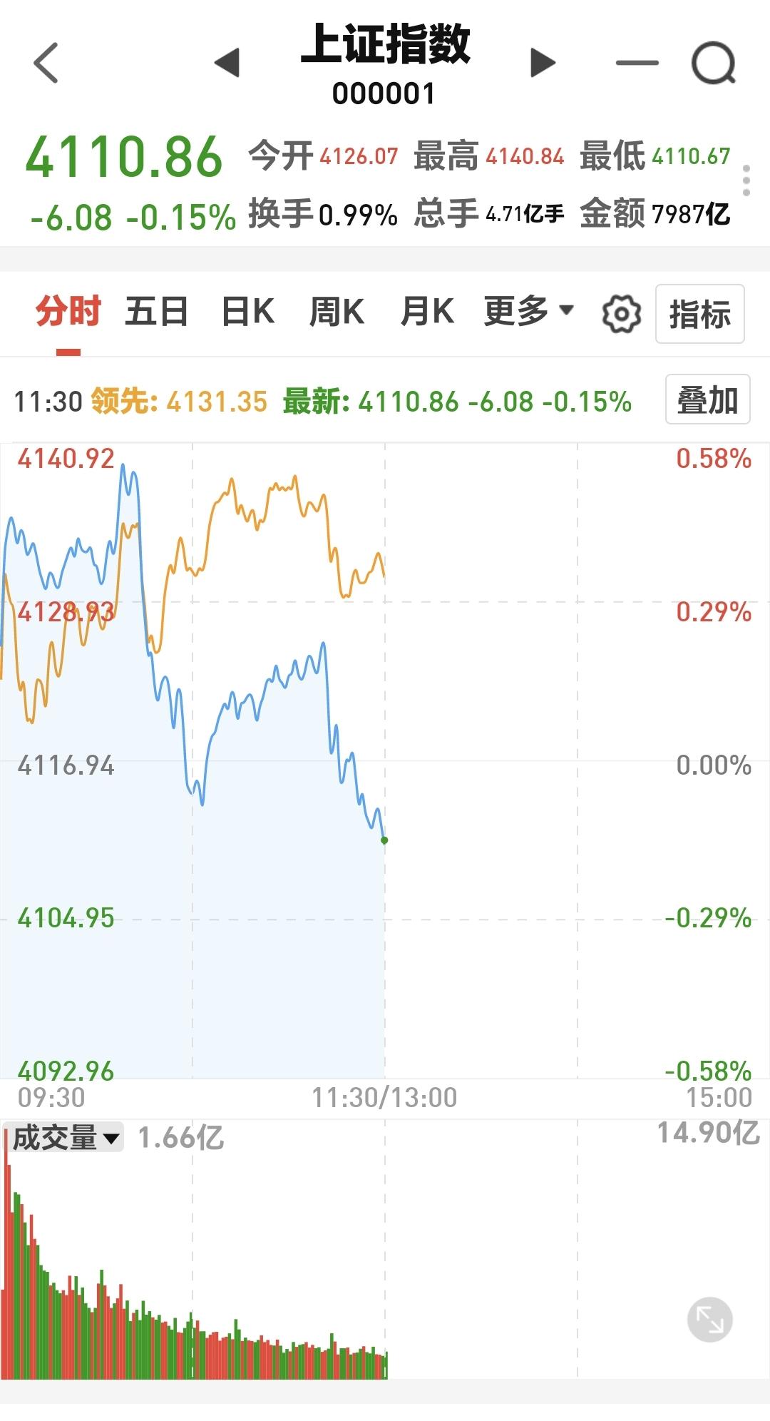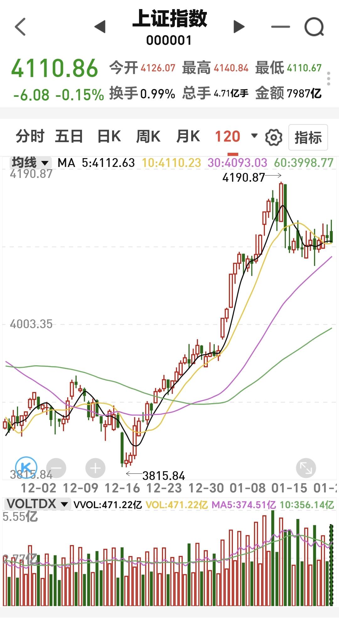 基金:白酒板块最近是连续下跌,创了近几年的新低,许多人失去了信心,这是因为他们的眼光没有看得很远,这是因为他们的认知没有达到一定的高度,他们认为,越跌会亏得越多,而我认为,越跌筹码会越便宜,这就是认知的不一样。 我们绝大部分人都有医保,我在前段时间的时候做了一个决定,我们老两口又增加了一份商业医疗保险,每个月交几百块钱,这样的情况之下,将来万一生病了,基本上是不需要自己掏医疗费用,很多人会认为,如果不生病,这个保险费不是白白浪费了,而我认为,这个钱浪费的越多越好,越浪费说明我们的身体越好,这也是认知的不一样。 今天市场高开低走,中午收盘的时候,三大指数都是小幅度下跌,但黄色线在蓝色线上方,两条线之间的敞口比较大,今天大跌的可能性很小,下午收盘的时候,大概率就是小涨或者是小跌。 中午收盘的时候,五天线位置是4111点,收盘点位4110点,正好跌破了五天线,市场上涨3200多家,下跌2000多家,上涨家数超过了下跌家数,涨停61家,跌停7家,涨停家数超过了跌停家数,内资净流出245亿。 持有的基金中,估值上涨幅度最大的三个板块是:可控核聚变板块,军工板块,先进制造板块,下跌幅度最大的三个板块是:新能源汽车板块,创新药板块,兴全合宜,估值整体亏损了5225元。 到现在为止判断,今天盘面的问题不大,既不会大涨,也不会大跌,就是一个小幅度震荡走势,整体上这段时间就是在横盘震荡,但这样的震荡时间越长,越不是好现象。