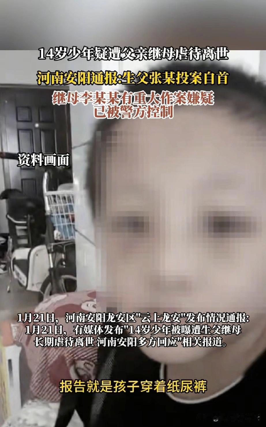 好消息,河南被虐待致死的14岁男孩的后妈已经被警方控制起来了。虽然亲爸说他自己打
