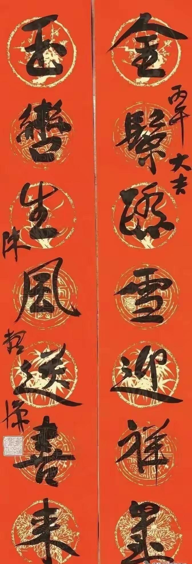 陈振濂为马年写的两副对联!初看火红的对联纸,浓黑的文字,远看挺是喜庆。但近观,有