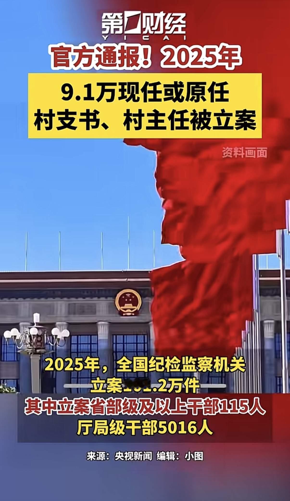 看到头条新闻一条震惊的新闻!根据官方通报,2025年全国有9.1万名现任、原任村支书、村主任被立案,这个数字太庞大了!全国一共有62.4万名村支书,9.1/62.4*100%=14.5%,全国有14.5%的村支书出现腐败案件。 将近1/5村支书出现腐败问题,也就是说我们老家一样,总共一个镇就七个村,按比例那肯定有一个村支书出事了! 农村村支书正常收入,除了国家帮忙缴纳社保以外,实收工资大概3到4千。当然,经济发达的地方肯定跟公务员差不多,有十几万,就比如说顺德,珠三角的村长、村支书年薪大部分都是十几万! 就在我们老家农村一个村支书,除了缴纳社保,还有三四千,其实很不错了,因为他就住在村里面,自己有田地还有山林,这些也有收入,村书记也不是很多事情,主要就是去乡里面开会,然后回来传达一下! 主要的工作大部分应该是调解村里面的村民之间纠纷,如果有村里面的工程改造要起到监督的作用!当然能力强一点的,可能会去县里面甚至外地拉一些赞助,拉一些资金回来支持乡村建设、乡村振兴! 如果能做满15年的村支书、村主任,那退休后也有社保工资,这个工作岗位还是不错的,而且在村里面也有地位,因为毕竟是村里的最高领导! 包括国家一些福利政策,比如说五保户啊,残疾人补贴啊,独生子女补贴啊,所有的政策落实都要通过村支书的审批,所以还是有权力的! 有权力,那么就容易产生腐败,你想申请这些补贴,要村支书同意,或者说国家的福利政策,到了村支书手里面,这些资金有没有真正落实到村民手里面?那么这就是给了村支书以机会! 而且往往现在农村很多村支书做了很久都没有更换,留在农村的往往都是老人跟小孩,有一些能力的年轻人都在城里面务工、经商,所以村支书往往更加一手遮天,根本没人能够监督、干涉他的工作,这样就容易滋生腐败的土壤! 你老家的村支书有没有出现腐败问题?你相信你老家的村支书是一个清廉的干部吗?! 当然,也有很多优秀的基层村干部确实也在努力的为乡村振兴而努力,也不能全面否定村干部!有一些年轻的大学毕业生回到老家去做村官,确实也是真正的为乡村振兴在付出青春和汗水! (图片来源网络。如有侵权,请联系删除)