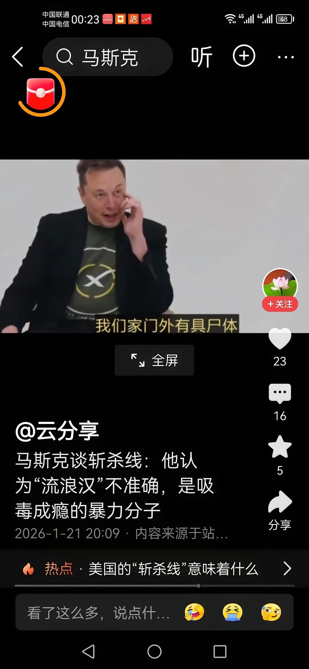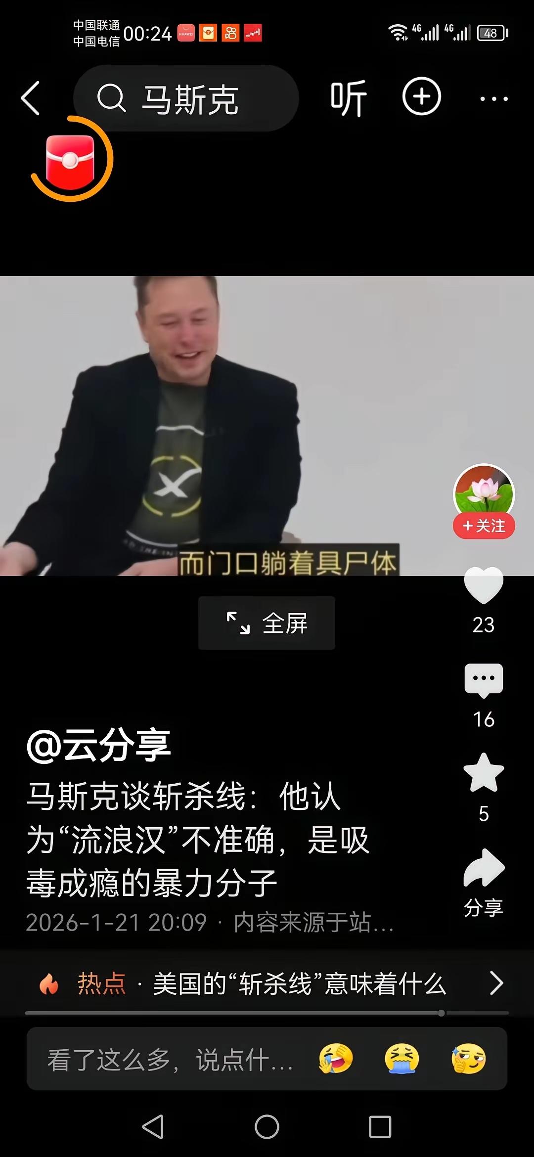 马斯克承认斩杀线的存在,但是不承认流浪汉!他认为那些人被斩杀,是因为他们都是吸毒成瘾的暴力分子。 要么,他没有真正了解这些人,要么他是刻意回避这个话题的真实性。 像马斯克这样,在美国顶级生活圈子的人,怎么可能清楚老百姓的情况?