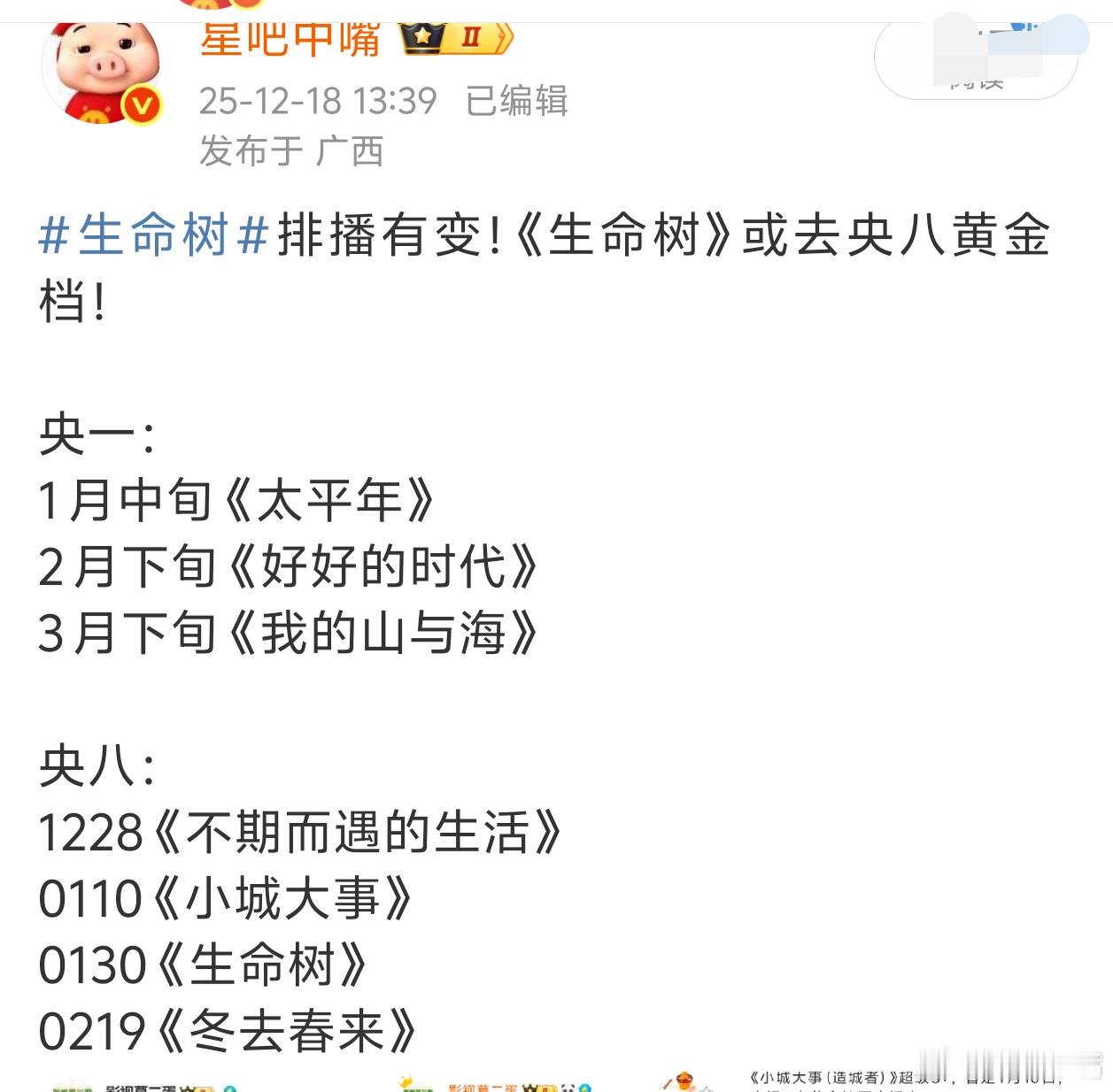 随着《太平年》定档,接下来央一的排播和我上个月发的差不多1月23日:《太平年》48集 2月23日:《好好的时光》40集正常排播3月23日:《我的山与海》/《主角》