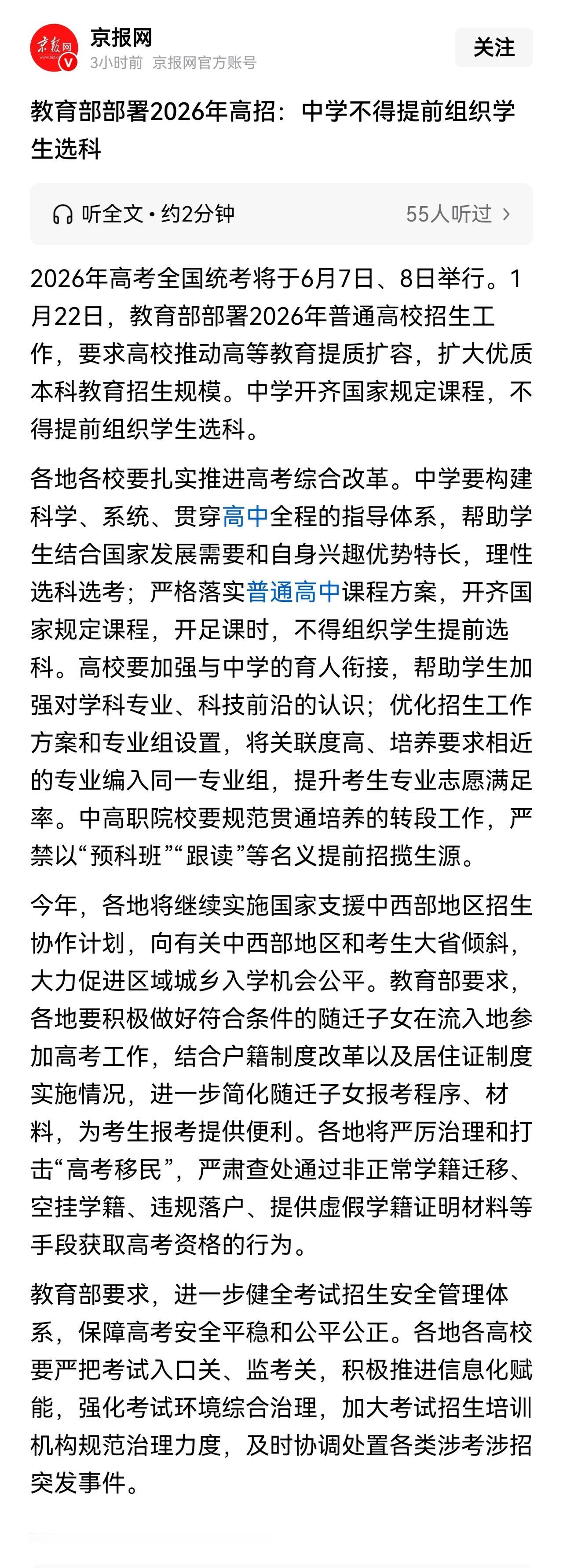 高中选科不仅提前,而且超级提前,有的已经提前到高一上学期,甚至高中入学的军训期间。为什么会这样? 一是为提高高考分数,先选好科,只关注选科学习,这是应试化的结果。 二是选科空间大大减少,受“文科无用”影响,加上高校的选科要求,学生选科组合受局限,要么物化,要么非物化,而且选物化的越来越多,因此,不少学校和学生、家长都认为早选更好。 这让新高考选科改革的意义大打折扣,没有起到取消文理分科,促进学生素质发展的作用。