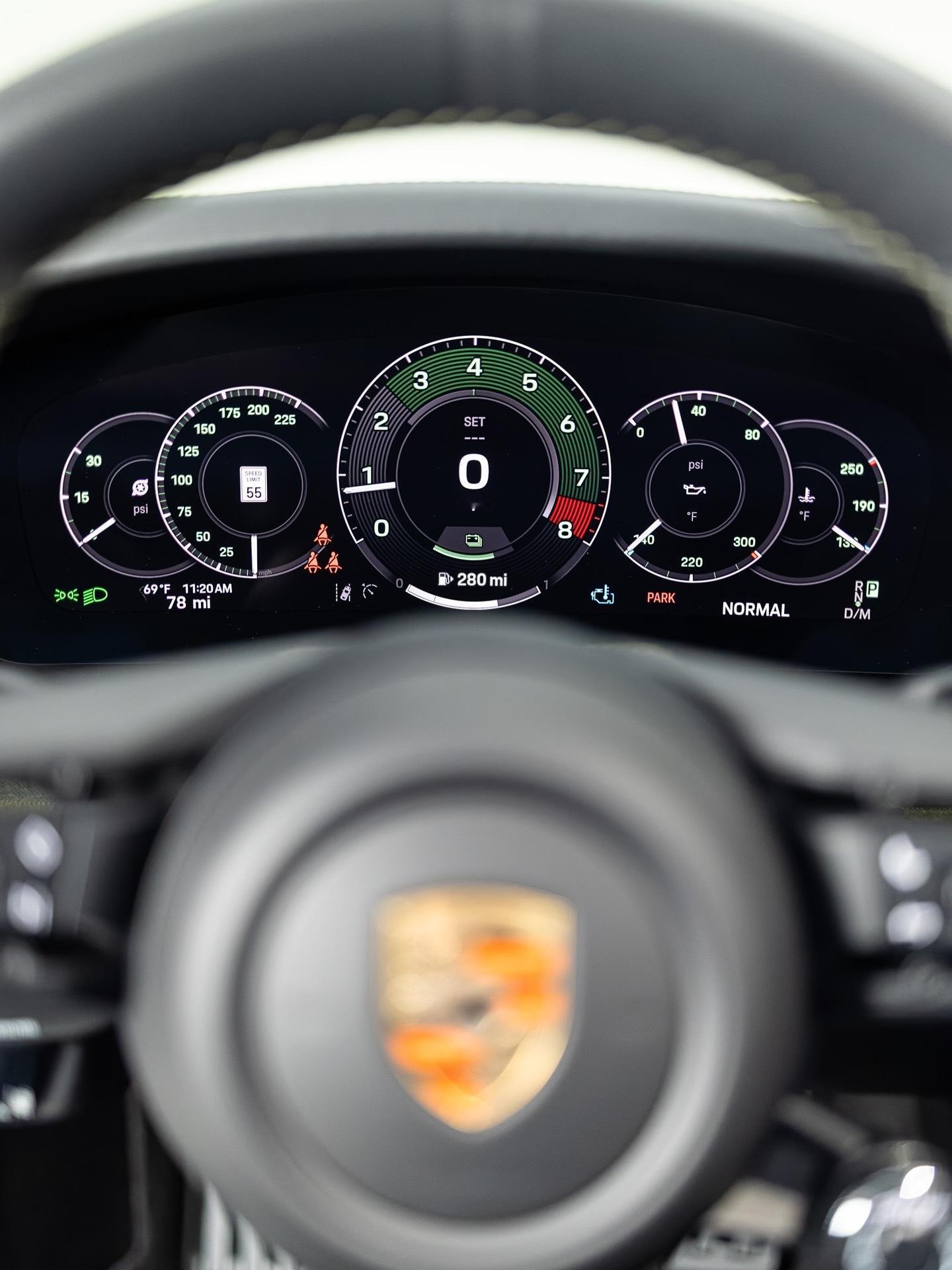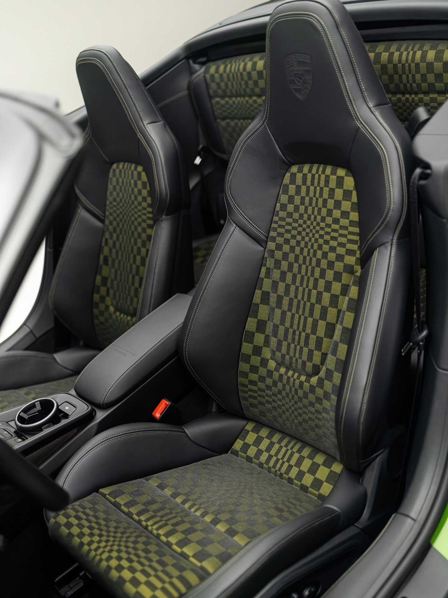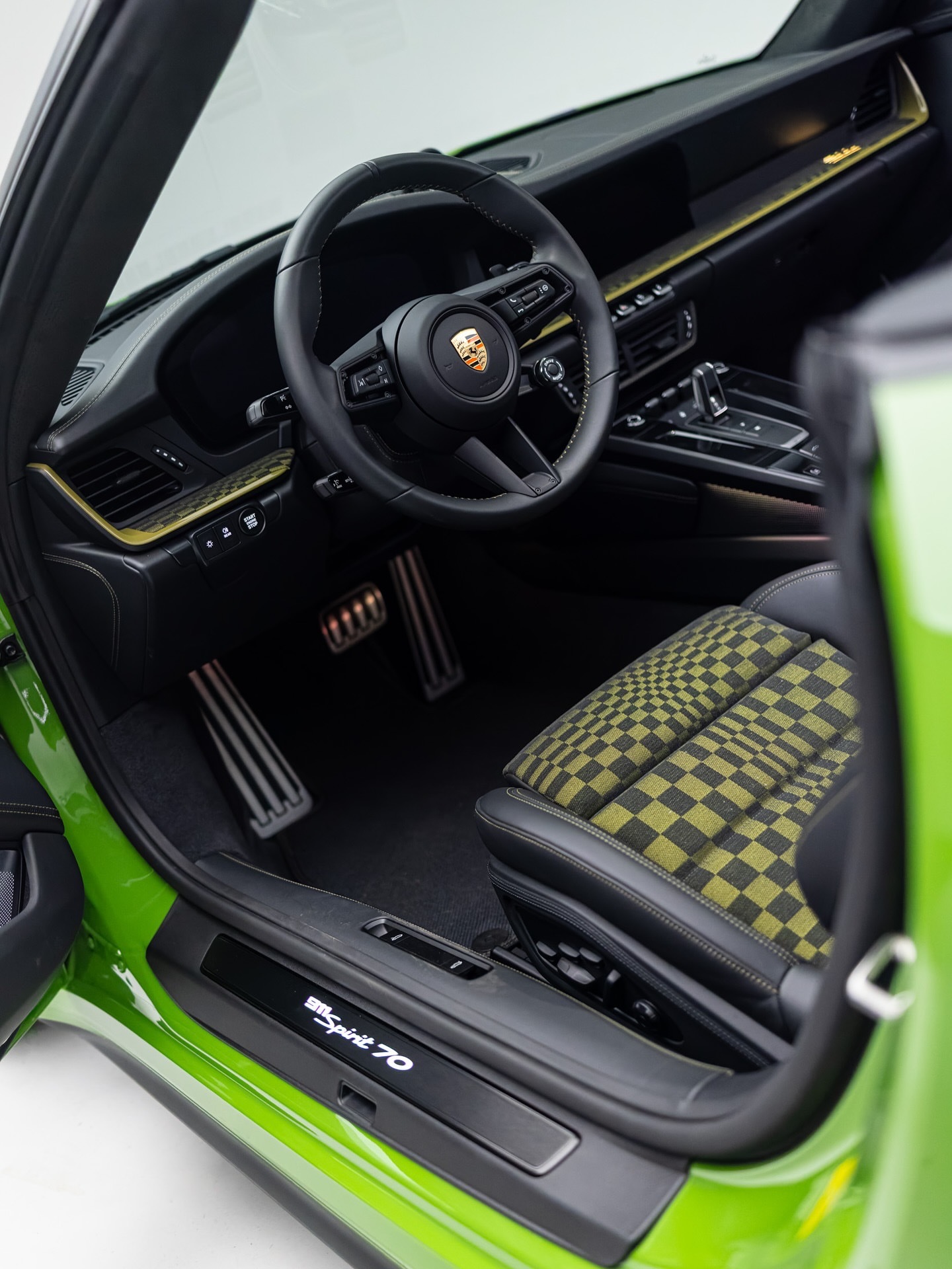 一个对保时捷最富有表现力时代的现代致敬。2026年保时捷911精神70车型旨在庆祝保时捷历史上的一个时刻,那时色彩、图案和个性成为了舞台的中心。直接汲取品牌1960年代末至1970年代的设计语言,精神70将传承美学与最新的911性能和技术完美融合。证明怀旧不必以牺牲能力为代价。这款车型采用PTS柳绿配色,这是一种符合时代色调的色彩,既大胆又永恒,搭配以玄武黑内饰,内饰中融入了黑色和橄榄绿新帕沙图案。帕沙图案不仅仅是视觉上的亮点,它直接呼应了那个时代保时捷最标志性的内饰,通过现代材料和工艺重新诠释。车舱和外观中的细微传承细节完美收官,使精神70不再仅仅是一个装饰级别,而是一种宣言。这样的车型是为那些既欣赏保时捷过去,也关注其未来的车迷所打造的。保时捷911豪车超跑老纪侃车