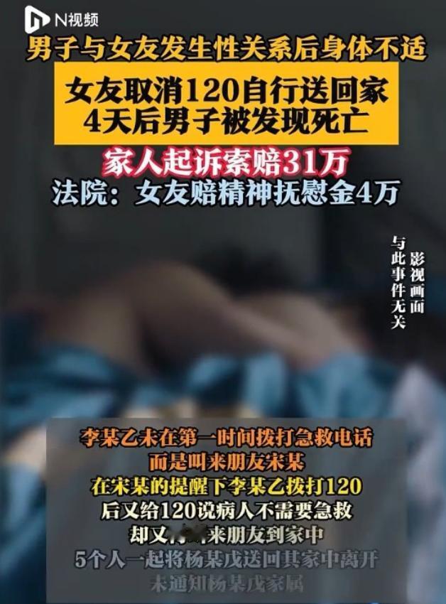 山西太原,杨某一大早就赶往女友李某家中,和对方发生了男女关系。后来杨某身体不适,意识逐渐模糊,李某却没有拨打120,而是叫来了朋友宋某,宋某劝她还是拨打120好,不过李某拨打后又回电说不用了,转而又喊了另外三个朋友来,五个人一起把杨某送到了他的家中。离开时,李某并未告知杨某的四个子女相关情况,直到四天后,杨某的儿子上门看望时,才发现父亲躺在床上离世。最后,杨某的子女直接起诉李某和另外四个人,要求赔偿31万余元。 山西这起案子,女友李某是彻底慌了神!眼看着男友杨某在自己家里出事,她不但没第一时间送医院,反而叫了五个人把人抬回家扔那儿就跑了。四天后杨某的儿子发现父亲躺床上已经没了呼吸,直接把李某和另外四个人告上法庭,索赔31万!不过,这事儿最后的判决可没家属想的那么简单,法院只判了5万块精神损失费。 这其中的法律门道,我们得细细捋一捋。 事情回溯到2023年5月7日上午,中年男子杨某接到了女友李某打来的电话,电话那头李某关切地说道:“快点过来吃早饭,我已经做好了,都是你喜欢吃的。” 杨某听完心里乐开了花,觉得这把年纪还能遇上如此知冷知热的人,属实不易,必须得倍加珍惜。他二话不说,穿戴整齐打车直奔李某住的小区,手里还提着专门给女友买的零食。 两人刚一照面,连桌上的美食都顾不上享用,便急不可耐地相拥在一起,正所谓一日不见如隔三秋。随后,二人发生了亲密关系。 这种事在热恋期本无可厚非,奈何杨某岁月不饶人,事毕之后身体突然亮起红灯,意识开始变得模糊。他强撑着对李某说:“我躺一会儿,有点不舒服,你自己吃早饭吧,别等我了。” 见男友说完话便沉沉昏睡过去,李某顿时六神无主。她第一反应并非拨打急救电话,而是生怕担责,于是火急火燎地把闺蜜宋某喊来拿主意,生怕杨某真有个三长两短,没法向对方的四个孩子交代。 宋某到场一瞧,也怕惹祸上身,当即劝道:“你还是拨打120吧,这样踏实一些。” 李某虽然照做了,但随后见杨某似乎清醒了些,竟又鬼使神差地回电话取消了急救,理由是人已经好差不多了。说穿了,她还是怕救护车动静太大,街坊邻居传闲话。 两人一合计,觉得让个病号躺在这儿是个雷,索性把他送回自己家,真要有个意外也赖不到自己头上。奈何两个弱女子力气不够,李某又摇了三个平时要好的朋友来“搭把手”。 就这样,五个人合力将杨某背下楼塞进车里,一路送回他自家寓所。见人当时还有呼吸,脸色也稍有好转,几个人便把灯一关、门一锁,作鸟兽散。 最要命的是,李某离开时压根没知会杨某的四个子女一声“你爸身体不舒服”。她怕什么?怕惹一身骚,怕这把年纪谈恋爱出事被晚辈戳脊梁骨,怕丢人现眼。 这一瞒就是四天。 直到杨某的儿子上门探望,敲门无人应答,推门而入后才惊觉父亲僵卧在床,早已离世。 得知父亲生前去过李某家,家属悲愤交加并选择了报警。调查结果显示李某虽无主观害人之心,但杨某确实是在被送回后死亡。家属随后一纸诉状将李某及另外四人告上公堂,索赔31万余元。 被告方则觉得冤枉:大家都是成年人,自己有病不注意,凭什么赖我们? 法院怎么判?核心在于证据链。 杨某家属必须证明父亲的死与这五人有直接因果关系。然而,《民事诉讼法》第六十七条规定:“当事人对自己提出的主张,有责任提供证据。” 家属无法拿出确凿证据证明这五人的行为直接导致了杨某死亡。因此,那31万的巨额赔偿诉求,包括丧葬费、交通费等,法院因证据不足一律驳回。 然而,法理之外亦有人情。杨某毕竟是在李某家发病,又被众人送回后“遗弃”致死,这种隐瞒不报的行为客观上给子女造成了巨大的精神创伤。 《民法典》第一千一百八十三条明确:侵害自然人人身权益造成严重精神损害的,被侵权人有权请求精神损害赔偿。 最终,法院作出裁决:李某需赔偿杨某子女精神损失费4万元,其余四名帮手共同赔偿1万元。 这判决可谓用心良苦。法院的意思很明确:杨某自身有基础病不注意,风险自担,不能全赖别人。但李某等人虽然出于好心送人,却在道义上存在重大瑕疵,不通知家属导致悲剧被掩盖,理应受罚。 说句公道话,若全判赔31万,以后谁还敢伸援手?但若一分不赔,对逝者家属又太过残忍。这5万元,恰是法律在是非与冷暖间找到的平衡。 信息来源:南方都市报道