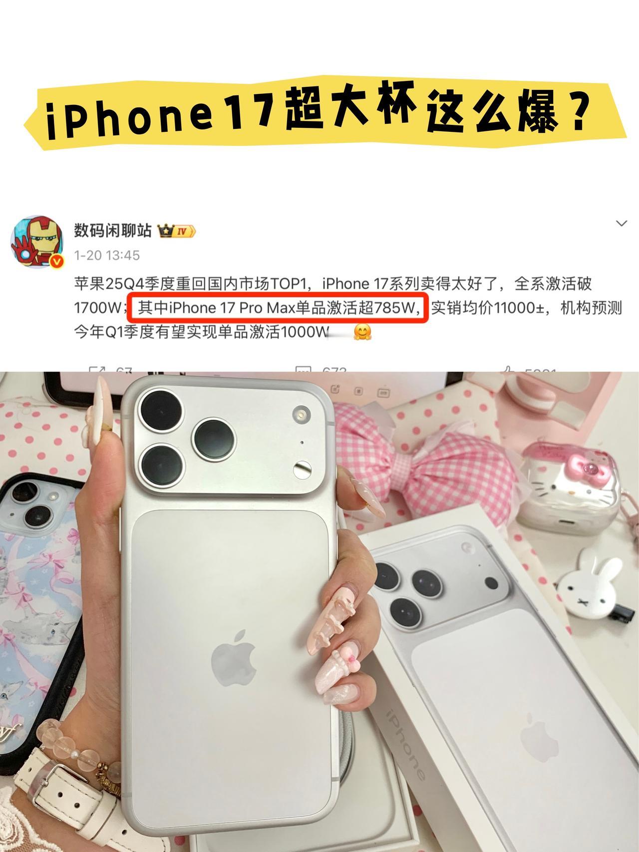 苹果这销量,哪家比得上? 🍎这下高端局杀疯了! 看看站哥的爆料,iPhone17 Pro Max激活量直接超785万台?!苹果这卖货能力没谁能比得上了吧?毕竟超大杯均价11000元,销量也能这么爆🤯 🤔为啥苹果这么好卖? iOS生态粘性有这么强吗?直接稳坐高端机王座啊!
