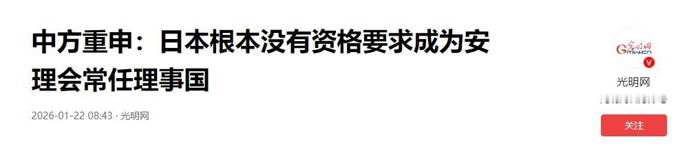 第80届联合国大会安理会改革讨论会议上,日本代表再次高调提出加入安理会常任理事国的请求,话音未落,中国常驻联合国副代表孙磊当场打断,毫不客气地回应:“日本根本没有资格。” 一个战败国,七十多年后还妄想爬上决定世界秩序的高位,不仅荒诞,还让人不得不问一句:日本,你是忘了,还是装作没发生过? 安理会五个常任理事国之所以享有否决权,是因为他们是二战反法西斯阵营的中坚力量。这是用鲜血和牺牲换来的位置。中国在那场战争中伤亡超过3500万人,背水一战地守住了亚洲战线。 而日本呢?从731部队的活体实验,到南京大屠杀的三十万人命,再到慰安妇制度的非人暴行,这些至今都没有一个明确的国家层级道歉,更别提司法清算。 这不是翻老账,这是账一直没结。哪怕到了2026年,日本政府还在参拜靖国神社,教科书改得让人以为他们打仗就是为了“保卫和平”。一个连过去都不敢面对的国家,怎么可能得到国际社会的信任? 更别说,日本近几年的举动已经远远超出了“历史问题”范畴。2025年,日本修改了所谓“安保三文件”,把自卫队的定义从“防御为主”悄悄转向“具备对敌作战能力”,这一步等于是在和平宪法的边缘疯狂试探。同时,高层不断放风讨论“拥核”可能性,甚至有人质疑延续多年的“无核三原则”。这种危险的政策摇摆,无论如何都和“和平国家”四个字搭不上边。 还有那些赤裸裸的地区挑衅言论,“台海有事就是日本有事”,这句话像是一颗钉子,狠狠钉进了东亚安全的神经。谁会放心把决定全球和平与安全的权力交到一个在地区不断制造紧张的国家手中? 早年日本曾引以为傲地承担了将近20%的联合国会费,但近年来却以“经济压力”为由将比例降到10%,还试图以此为筹码换取更多话语权。这种“有钱时当大哥,没钱时就耍赖”的态度,怎么看都不像一个负责任大国。 反观中国,不仅是联合国维和部队人数第二多的国家,还通过亚洲基础设施投资银行为全球南方国家提供了大量发展资金,谁更像全球治理的中坚力量,一目了然。 至于国际社会的态度,也早已给了答案。韩国总统尹锡悦在2025年公开表示:“日本没有资格代表亚洲。”东南亚多国媒体也纷纷指出,日本至今未对“大东亚共荣圈”的殖民暴行进行全面道歉。 在俄罗斯眼中,日本更是一个仍未完成战后归属调整的国家,北方四岛的争端直接演变为军演对峙。这些都不是偶发事件,而是对日本“入常”企图最直接的否定。 别忘了,2025年非洲54国联合会议上,多国代表明确表达了对日本历史问题的担忧,反对让一个历史责任未清的国家进入安理会核心。即使美国仍在背后力挺,视日本为制衡中俄的重要棋子,但欧洲国家内部对日本“入常”也并不买账。德国的例子太鲜明:默克尔曾在华沙下跪,为纳粹罪行公开道歉,才赢得国际尊重。而日本在这方面的表现,连“及格线”都算不上。 从国际法的角度看,日本“入常”的合法性也是经不起推敲的。联合国宪章明确确立了二战胜利国的特殊地位,这不是一个可以“修改”的历史条文。日本作为战败国,身份本身就与维护战后秩序的角色矛盾重重。如果让一个至今仍试图淡化侵略历史的国家坐上安理会常任席位,那不仅是对世界人民的背叛,更是对历史正义的践踏。 中国的立场十分明确。反对日本“入常”,不只是防止一个国家“爬错楼梯”,更是守住二战胜利成果与国际秩序的底线。联合国不是谁出钱多谁说了算的俱乐部,它代表的是人类对战争的反思与和平的承诺。日本要想真正成为国际社会的关键一员,第一步不是抢椅子,而是补课——补那堂历史责任的课。 今天的中国,坚定捍卫联合国宪章的原则,坚决反对任何试图美化战争、歪曲历史的行为。联合国的改革当然需要进行,但那应该是让发展中国家发出更大声音,而不是给历史修正主义者开绿灯。 中方重申:日本根本没有资格“入常” 再度强调日本需“正视历史”!2026年01月22日 08:47 来源:深港在线综合