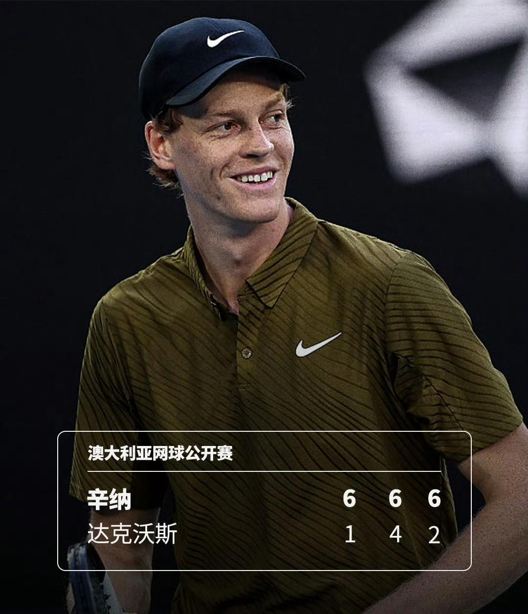 辛纳的网球技术已经登峰造极了,是网坛遥遥领先的独一档,今年或明年就能拿下年度全满贯,其他人再怎么努力也只能是第二。 想从他手下赢下一盘都很难,只能寄希望于阿卡。来看看他们前两轮战绩,怎么看都是辛纳强。 1、辛纳 澳网2026男单第二轮,两届卫冕冠军辛纳以6-1/6-4/6-2横扫达克沃斯。 在澳网首轮,辛纳6-2/6-1领先时,对手吓得退赛。 2、阿尔卡拉斯 首轮:6-3/7-6(2)/6-2沃尔顿 第二轮:7-6(4)/6-3/6-2汉夫曼