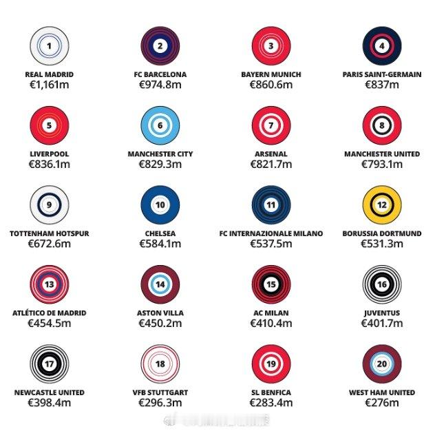 阿森纳超过了曼联,和曼城不相上下,国际会计事务所德勤发布24/25赛季足球俱乐部收入报告:1. 皇家马德里 11.61亿欧2. 巴塞罗那 9.748亿欧3. 拜仁慕尼黑 8.606亿欧4. 巴黎圣日耳曼 8.37亿欧5. 利物浦 8.36亿欧6. 曼城 8.293亿欧7. 阿森纳 8.217亿欧8. 曼联 7.931亿欧9. 热刺 6.726亿欧10. 切尔西 5.841亿欧 阿森纳著名教授 英超联赛 热搜多元内容创作计划