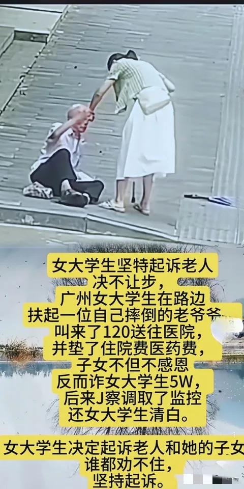 近日,广州一名女大学生的做法,狠狠戳中了很多人的心声。 她路遇老人摔倒,毫不犹豫上前帮扶、垫医药费、叫救护车,这一套行云流水的善意,换回来的是对方张口就要讹5万。 好在现场监控还原了全部真相,女孩没撞人,纯粹是热心出手相助,这份清白来得及时,却也让人心头堵得慌。换作任何一个普通人,怕是都要后怕——自己掏腰包救人于危难,转身就被当成待宰羔羊,这份落差谁能承受?女孩没有忍气吞声,她坚持起诉老人及其家属,任谁劝说都不退让,这份硬气不是较真,是在为所有想行善却不敢的人撑腰。 这样的事儿不是孤例,去年江西抚州就有17岁少年扶老人反被诬陷殴打,挨了5记重巴掌不说,还被家属逼着赔钱,也是靠监控洗清冤屈,最终讹人老人被行政拘留9日、罚款200元。更早之前海南琼海,女子施救摔倒老人送医,老人不幸离世后被家属索赔24万,官司打了两轮,法院最终驳回诉求,就因为家属拿不出任何碰撞证据。这些案例里,救人者都赢了,可过程里的委屈、煎熬,只有他们自己清楚。 很多人纠结扶不扶,核心不是冷漠,是怕善意被践踏,怕有理说不清。过去大家总担心,万一没监控没证人,是不是跳进黄河都洗不清?现在完全不用慌,《民法典》里的“好人条款”早就给了定心丸,自愿实施紧急救助造成受助人损害的,救助人不担民事责任,2026年初国家卫健委更是明确,只要没有故意或重大过失,善意救助一律免责。更关键的是举证规则变了,不再是救人者自证清白,而是讹人方拿证据说话,拿不出实锤,诉求根本站不住脚。 广东去年施行的见义勇为奖励条例更给力,不仅给救人者最高30万奖金,还明确侮辱、诬告救人者要追责,从根源上杜绝造谣抹黑。这就意味着,行善不仅有法律兜底,还有政策撑腰,讹人者再也不能肆无忌惮。那位广州女大学生的坚持太有意义了,她不是要跟老人为难,是要明确一个态度:善意不该被消费,讹人必须付出代价。倘若因为怕被讹就冷眼旁观,摔倒的是老人,凉透的是整个社会的良心。 试想一下,要是人人都怕惹麻烦,路上的危难者谁来搭救?要是讹人行为得不到惩戒,只会有更多人效仿,到最后没人敢行善,受伤的终究是我们每个人。女孩的硬气,恰恰是守住了善良的底线,她用行动告诉所有人:行善没错,错的是利用善意作恶的人;该羞愧的不是救人者,是那些揣着明白装糊涂、想靠讹人牟利的人。 各位读者你们怎么看?欢迎在评论区讨论。