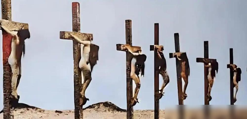 这张照片你可能在网上见过,8名年轻的少女一丝不挂,被铁钉死死钉在巨大的十字架上,