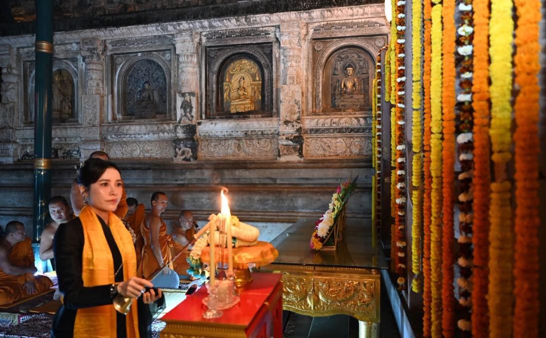 诗妮娜贵妃替国王陛下出席活动美翻了!穿黑色衣服长发挽起,跪坐在地面上祈福,还双手合十很虔诚,而且手腕上的手环与耳坠是同一个系列,和所穿的服装很搭配。 据悉,贵妃娘娘要前往印度主持“佛法之船,驶向佛教之地”论坛的开幕式,不知道这是到了哪里,不过出席寺庙活动的她确实好看。 这是要走向高光时刻的的节奏呀!毕竟国王陛下后宫嫔妃众多,像她这样拥有头衔的也不少,何况贵妃已经年过四十,只有抓住国王陛下的心被国王陛下重用,贵妃之位才能坐得稳当呀!