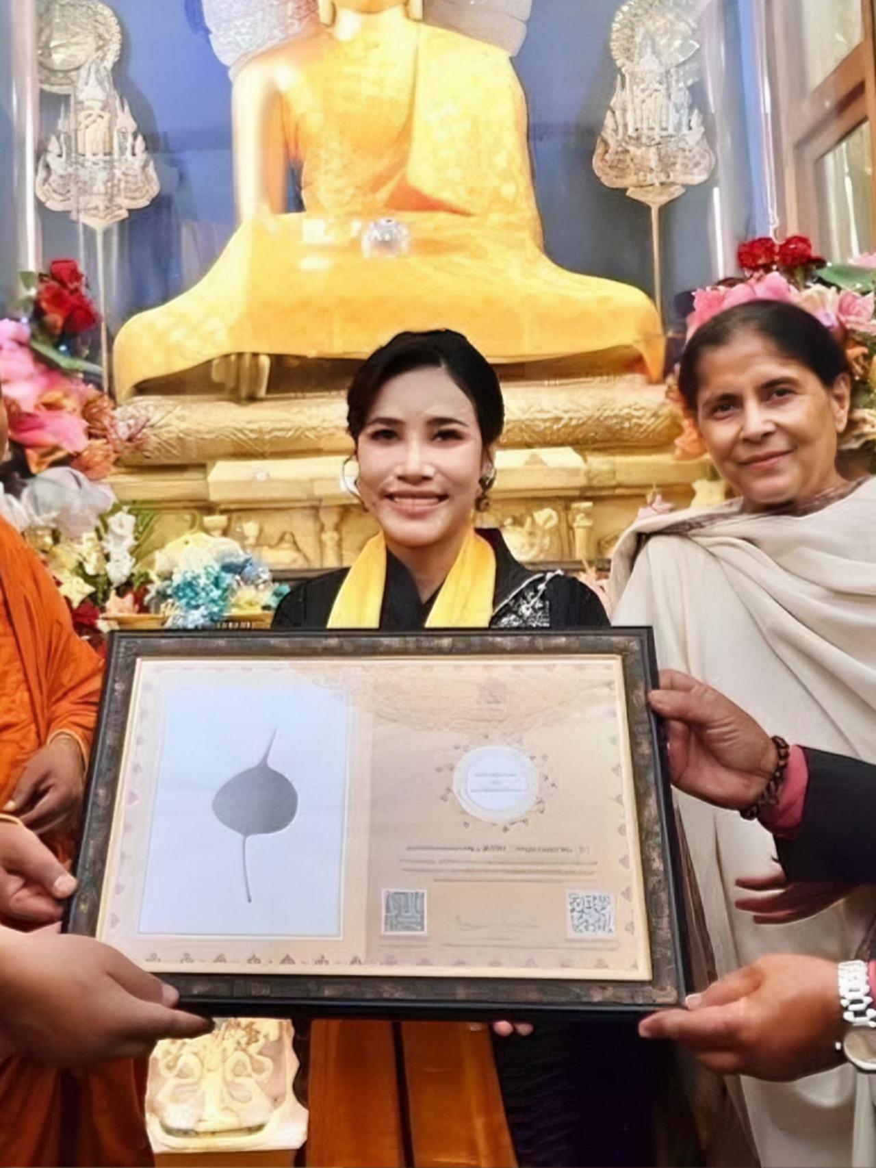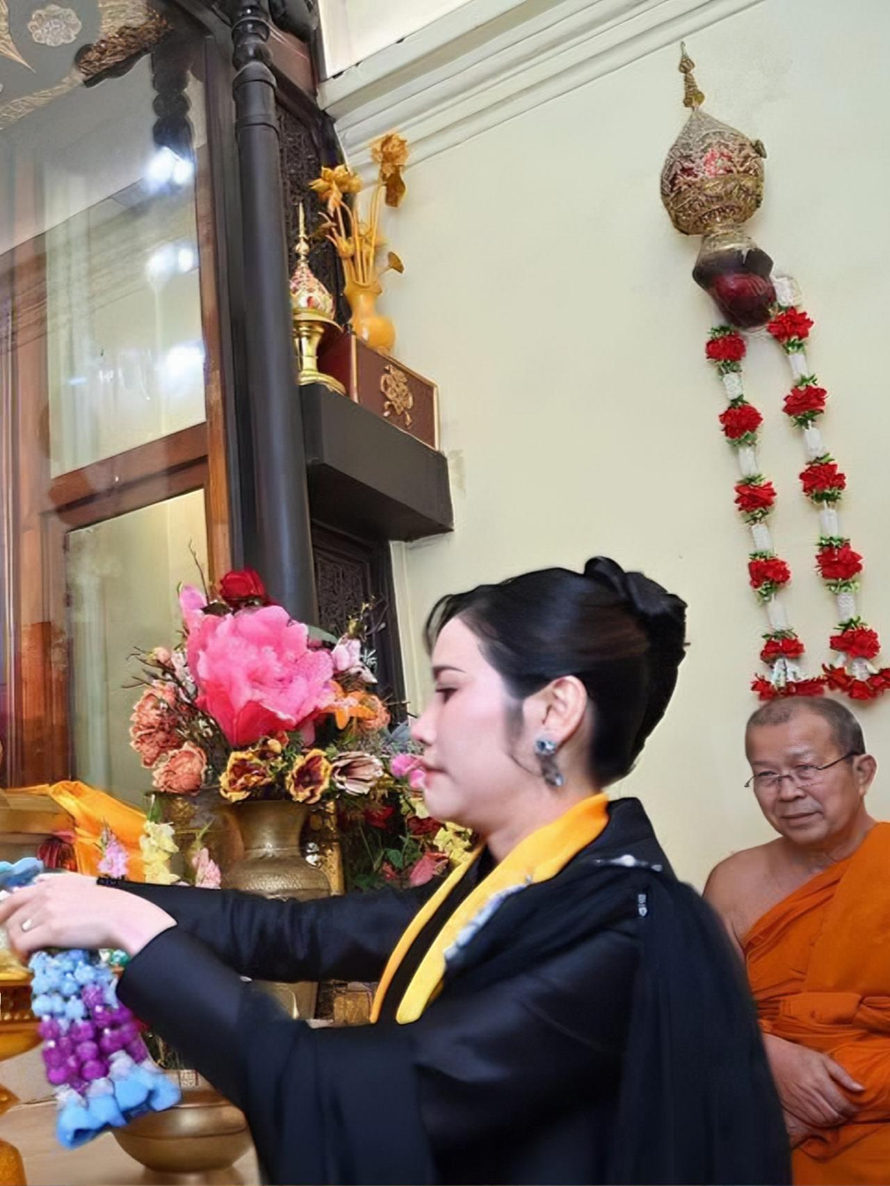 诗妮娜贵妃路透照出炉,头戴面纱仙气飘飘 诗妮娜贵妃在母亲陪同下,于佛陀成道地菩提伽耶,向慈悲佛像、菩提树及摩诃菩提寺致敬。此时她刚获国王隆重任命为陛下代表,出席“泰国皇家海军佛法之船前往佛教圣地”项目,在印度比哈尔邦伽耶市举办的开幕式。此活动由佛教传教士公共关系办公室印度 - 尼泊尔分会负责 。