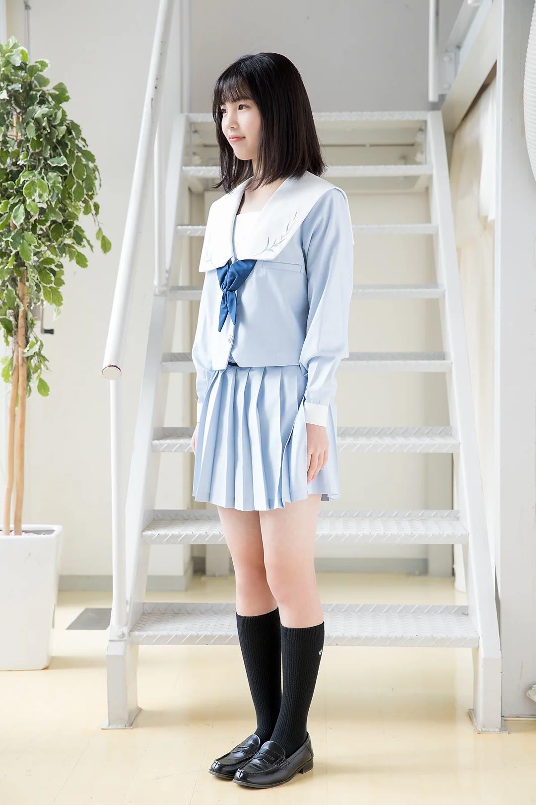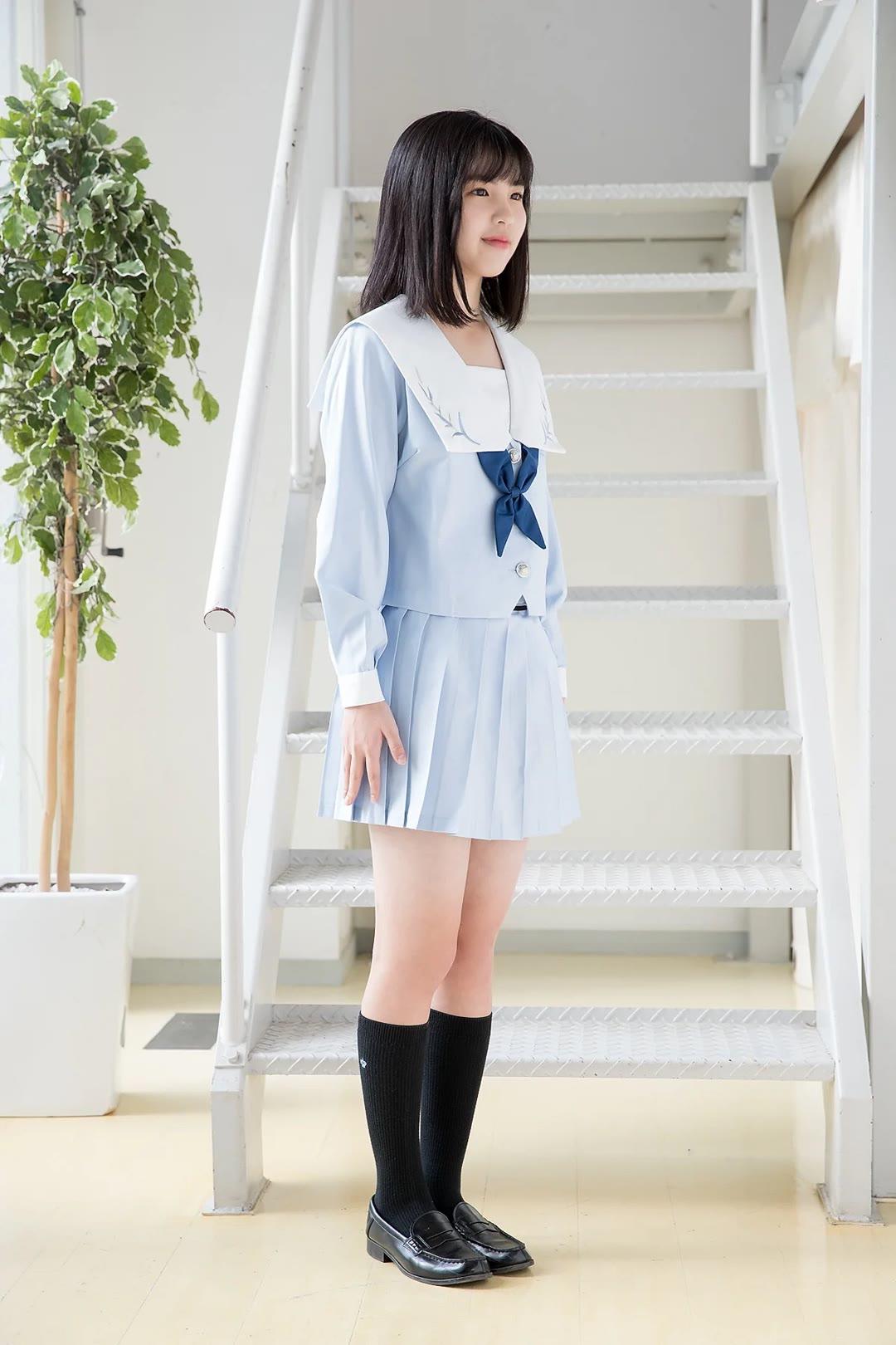青春洋溢的校园风,少女甜美笑容,可爱制服,清新背景。