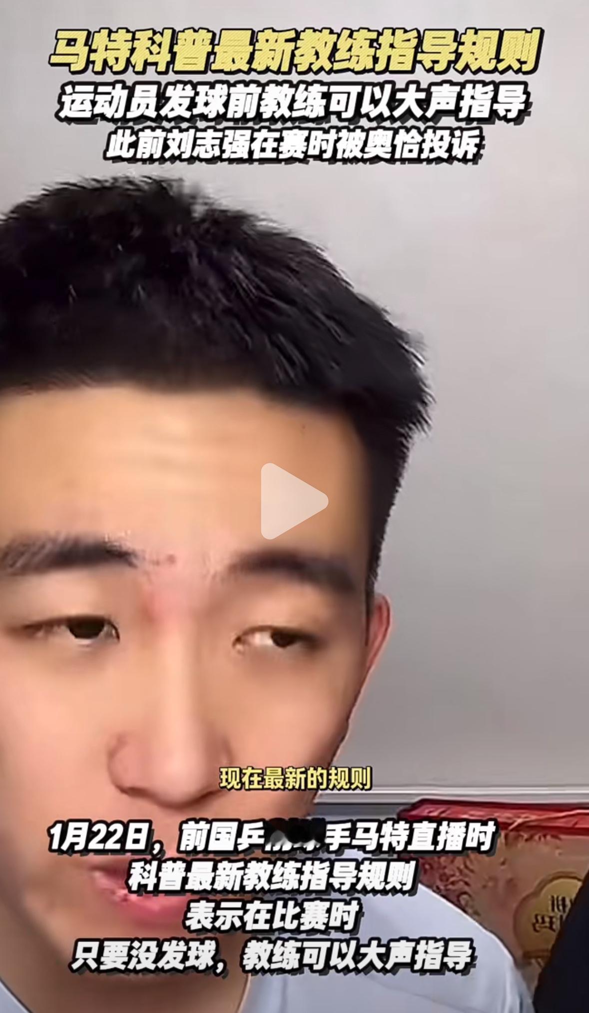 马特科普最新教练指导规则:运动员发球前教练可以大声指导! 1月22日,马特在直播间说, 最新教练规则, 教练员是可以在任何时间给 自己的队员指导, 就是在场外,教练是可以喊的, 比如志强指导在喊 “他在发长的,你楼他!” 这种运动员发球前是可以说的, 规则改了,朋友们! 这两天,志强指导队员后, 被奥恰洛夫投诉, 马特为志强指导解释清楚啦…… 那一分钟暂停就只剩下打乱对手节奏,如果规则是这样, 那么赛场上双方教练不停的 用各自的语言喊出技战术, 那岂不是特别搞笑🥸…… 很难想象两个教练员在场上互喊, 我说林昀儒的教练可以替林昀儒 喊出来,增加现场气氛哦!