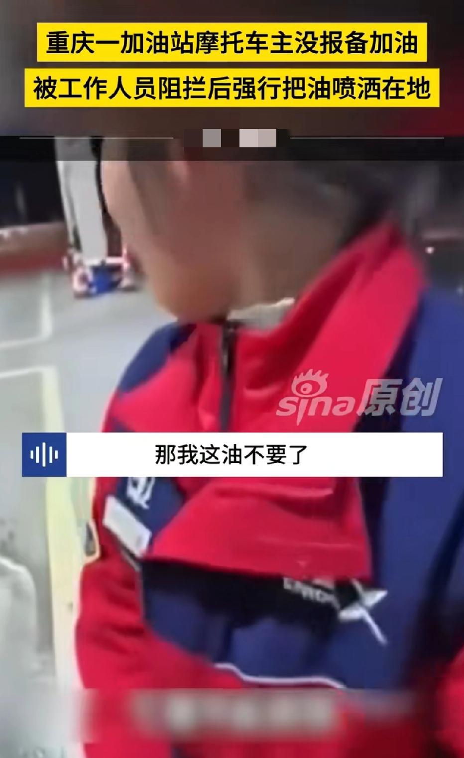 重庆,男子骑摩托在高速服务区加油被拒绝,工作人员称摩托禁上高速,要先打电话报备。男子却不理会,还表示只加一点应急,工作人员始终不松口,男子一气之下泼洒汽油在地,工作人员当场慌了,而男子的结局大快人心! 27岁的男子张某正骑着摩托车赶路,他平时就爱骑摩托出门游玩。 这次出行也是一路走走停停,想着往周边多逛几圈。 可骑到半路,摩托车的油表亮了红灯,眼看就要没油,他赶紧拐进了就近的高速服务区加油站。 他心里只想着赶紧加个油,不耽误后续的行程。 但他没想到,自己骑的摩托车,在当地本就是明令禁止上高速的。 张某走到加油机旁跟工作人员说要加油。 谁知道工作人员抬头看了眼他的摩托车,直接摆了摆手拒绝了。 张某一脸纳闷,忙问为啥不给加。 工作人员直言:摩托车本来就不能上高速,想在这加油得先打电话报备,走流程,现在没法给你加。 这话让张某一下子急了,他看了看周围,这服务区前不着村后不着店,摩托车没油根本没法走,总不能推着车下高速吧。 他赶紧跟工作人员说好话,语气哀求道:这次也是没注意油表,实在是没辙了,你就给我加一点点。 本以为说点软话,工作人员能通融一下,可不管张某怎么说。 工作人员就是不松口,反复强调规定就是规定,不是一点点的问题,是不能破例,要么按流程报备,要么就别加。 张某耐着性子又恳求了好几遍。 工作人员为难地表示,她如果破例的话,她会丢了工作,希望张某换位思考。 一来二去,张某的火气也被磨上来了。 本来就因为没油心里着急,想着只是加一点应急,又不是违规多加,结果被工作人员硬邦邦地拒绝了半天,一点情面都不讲。 他越想越气,一股火直往头顶冲,也顾不上那么多了,一气之下就拿起加油枪,把1升汽油直接泼洒在了的地面上。 汽油洒在地上的瞬间,都吓了一跳,加油站本就是易燃易爆的地方,这可是天大的危险! 刚才还态度强硬的工作人员,看到地上的汽油,脸瞬间白了,当场就慌了神,下意识地往后退了几步,说话都有点结巴,赶紧喊来了加油站的其他工作人员。 而张某呢,却趁乱将汽油又加到摩托车中。 与此同时,周围的车主也纷纷躲开,生怕出什么意外,现场一下子乱了起来。工作人员回过神后,第一时间报了警。 可张某却不慌不忙地骑车出了高速公路,他本以为这只是一时气头上的举动,顶多被警察说几句,根本没意识到自己闯了大祸。 殊不知,在加油站故意泼洒汽油的行为,已经涉嫌危害公共安全,违反了治安管理处罚法。 《治安管理处罚法》第23条规定,扰乱车站、港口、码头、机场、商场、公园、展览馆或者其他公共场所秩序的,处警告或者二百元以下罚款;情节较重的,处五日以上十日以下拘留,可以并处五百元以下罚款。 张某在加油站泼洒汽油,该行为扰乱了公共场所秩序,且加油站属于消防安全重点单位,其行为还涉嫌危害公共安全,公安机关可依法对其处以行政拘留处罚。 同时针对他违反禁令标志指示驶入高速公路的交通违法行为,处以罚款100元、驾驶证记1分的处罚。 张某不仅没顺顺利利赶路,还为自己的冲动和任性付出了惨痛的代价,得知这个结果的网友们,都直呼大快人心。 网友们直言加油站是易燃易爆的高危区域,泼洒汽油的行为无异于拿在场所有人的生命开玩笑。 静电、烟头但凡有一点意外,后果都不堪设想,为了自己省点报备的功夫,把别人的安全当儿戏,太自私了! 还有人表示他“看着挺横,实则是没教养,规则不是为他一个人定的,凭什么要求别人破例迁就他。 任何个人的方便和情绪,永远不能凌驾于公共安全和规则之上。