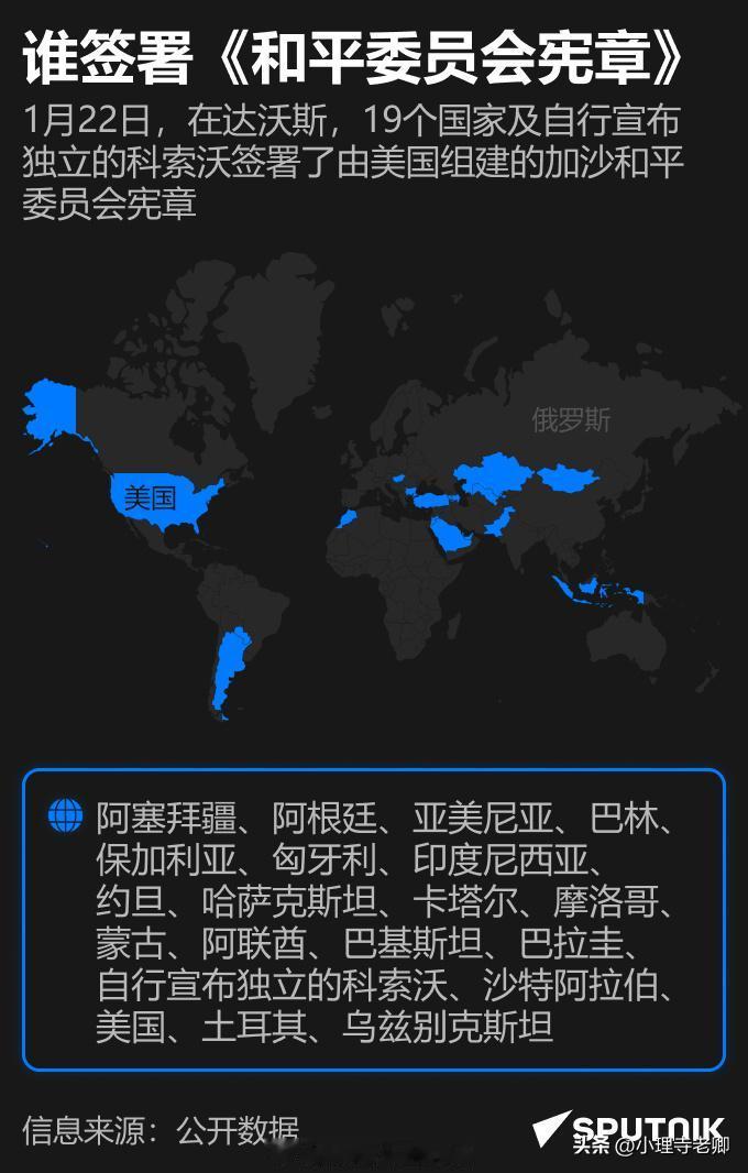 【谁签署《和平委员会宪章》】 2026年1月22日,达沃斯会议正式批准《和平委员会章程》。建立和平委员会是美国推动加沙局势解决方案的一部分。该倡议提出对加沙地带实施临时国际托管,并授权在协调以色列和埃及的前提下,在该地区部署维和部队。 国际观察八国联合声明将加入和平委员会 和平委员会正式成立
