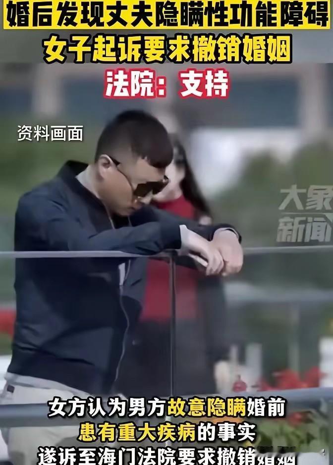 及时止损!江苏南通,新婚之夜丈夫拒绝和女子同房,女子以为丈夫太累便没在意,不料,后来丈夫也总是以各种理由拒绝进行夫妻生活,长此以往女子发觉事有蹊跷,方知丈夫患严重的性功能障碍,女子觉得被骗怒不可遏,将丈夫告上法院,请求撤销婚姻,法院这样判! 结婚本是奔着一辈子的相守,可江苏南通这位女士的新婚之夜,却成了她婚姻噩梦的开端。谁能想到,盼来的朝夕相伴,竟藏着丈夫刻意隐瞒的秘密,最后闹到法院收场,这中间的曲折实在让人唏嘘。 黄女士和陈先生原本是同学,毕业后重逢互生情愫,相处一段时间后觉得彼此合适,便顺理成章地走进了婚姻殿堂。 婚礼当天宾朋满座,看着身边温柔体贴的丈夫,黄女士满心都是对未来美好生活的憧憬,压根没料到这场看似圆满的婚姻,从一开始就埋着隐患。 新婚之夜,忙碌了一整天的两人回到新房,黄女士正期待着属于两人的甜蜜时刻,陈先生却面露疲惫,说自己太累了想早点休息,面对丈夫的提议,她没多想就答应了,只当是婚礼的繁琐耗尽了他的精力。 可让黄女士没想到的是,这只是个开始。之后的日子里,每当她想与丈夫亲近,陈先生总会找各种理由推脱,要么说工作压力大没心思,要么说身体不舒服需要静养。 一次两次还好,可几个月下来一直这样,黄女士渐渐觉得不对劲。夫妻之间本该亲密无间,可丈夫的刻意疏远,让两人之间的隔阂越来越深,曾经的甜蜜也慢慢被尴尬取代。 她试着旁敲侧击地询问原因,陈先生却总是含糊其辞,不愿正面回应,这让黄女士心里的疑虑越来越重。 忍了大半年后,黄女士实在无法忍受这种名存实亡的婚姻,坚持要丈夫去医院做检查。 在她的一再要求下,陈先生才不情不愿地跟着去了医院,而检查结果让黄女士如遭雷击——丈夫患有严重的勃起功能障碍,而且这种情况已经持续两年了。 也就是说,在两人谈恋爱甚至决定结婚的时候,陈先生就已经知道自己的病情,却一直瞒着她,直到婚后被发现才无法再掩饰。 得知真相的黄女士又气又委屈,她觉得自己受到了巨大的欺骗。当初选择结婚,是基于对陈先生的信任,可对方却隐瞒了如此重要的事情,剥夺了她知情和选择的权利。 这样的婚姻对她来说毫无意义,思虑再三后,黄女士下定决心,将陈先生告上了法院,请求撤销这段充满谎言的婚姻。 法院受理案件后,经过详细审理查明了事情的全部真相。陈先生也承认,自己婚前就知道患病,因为担心黄女士知道后会拒绝结婚,所以一直没敢坦白,婚后也没能履行配偶的义务,对黄女士造成的伤害他深感愧疚,也同意撤销婚姻。 法院认为,虽然性功能障碍不在《母婴保健法》明确列出的婚前检查疾病范围内,但性生活是婚姻生活的重要组成部分,也是配偶权的核心内容之一,是否具备正常的性能力,直接影响当事人是否选择缔结婚姻的决定,属于应当如实告知的重大疾病。 陈先生婚前隐瞒病情,侵犯了黄女士的知情权和婚姻自主权,符合《民法典》中可撤销婚姻的法定情形,最终依法判决支持了黄女士的诉讼请求,撤销两人的婚姻关系。 这场因为隐瞒病情引发的婚姻纠纷,最终以撤销婚姻告终。婚姻的基础是坦诚相待,任何刻意的隐瞒都可能成为摧毁婚姻的导火索。 对此,你们有什么看法,欢迎评论留言~