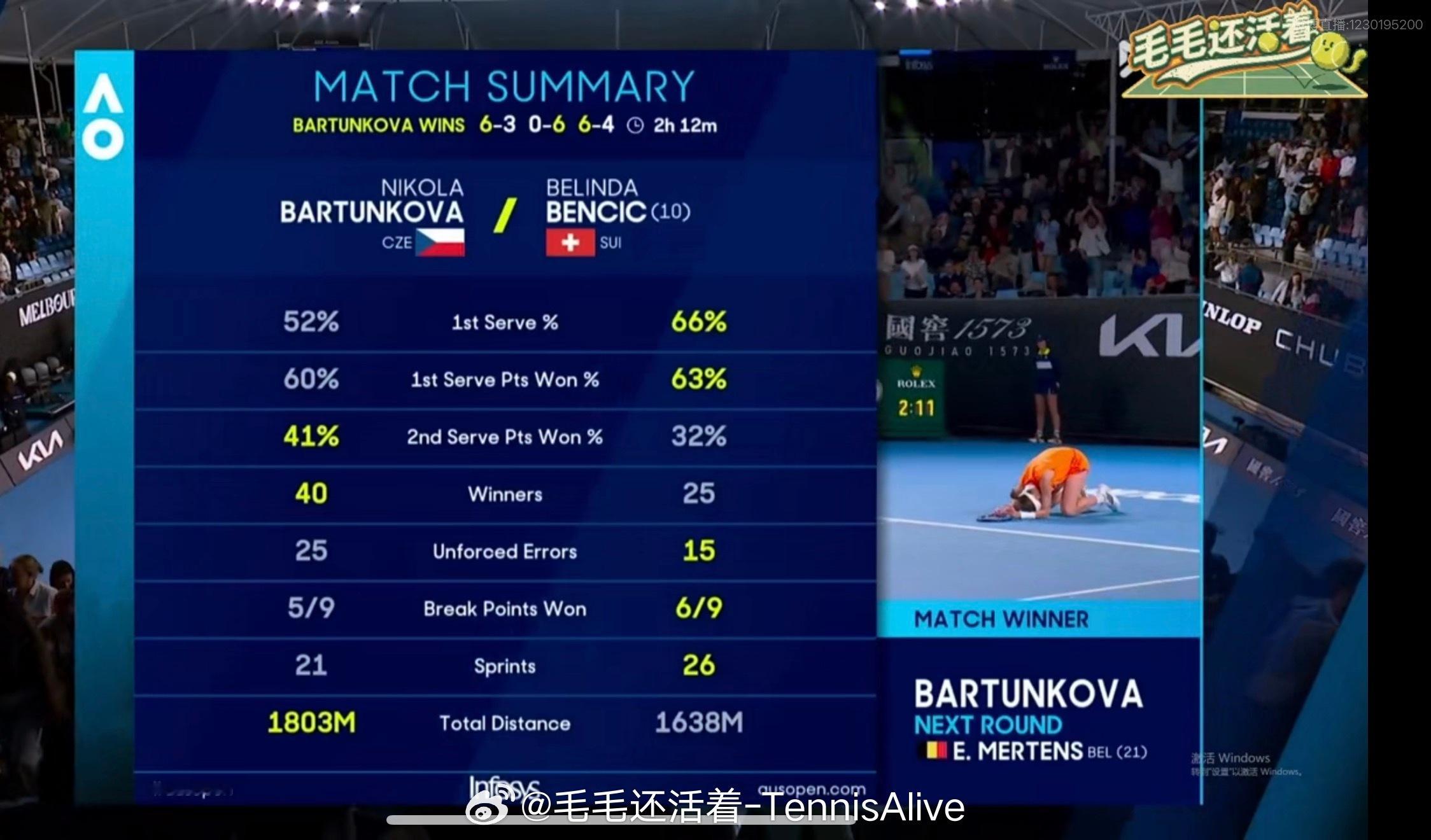 被这个巴尔通科娃吸粉,非常全面的打法、非常聪明的击球线路、沉着冷静的击球策略。她在这场比赛当中展现出了所有。她打出了40记致胜分、只有25记失误。这位19岁的小将未来可期。其实本西奇打的并不差,只是完全被带进了小将的节奏中,超级精彩的一场比赛。这很澳网 澳网女单10号种子出局