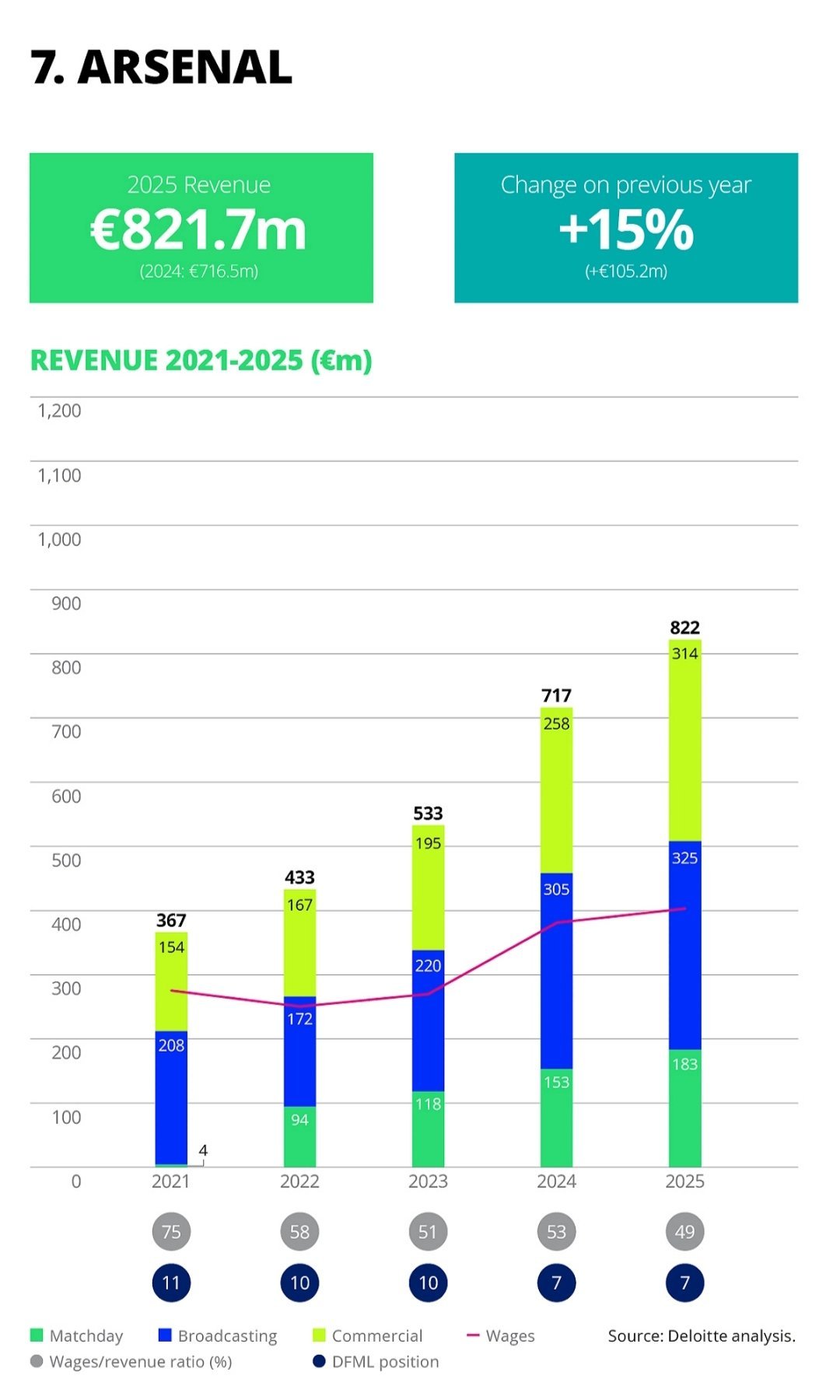 ŁukaszBączek消息,在2024/2025赛季,阿森纳足球俱乐部实现了约8.22亿欧元的创纪录总收入,较上一财年增长约1.05亿。这一增长主要源于强劲的商业表现——商业收入同比增长达5600万。目前俱乐部共拥有32家赞助合作伙伴,其中23家为全球性赞助商。阿森纳 英超联赛
