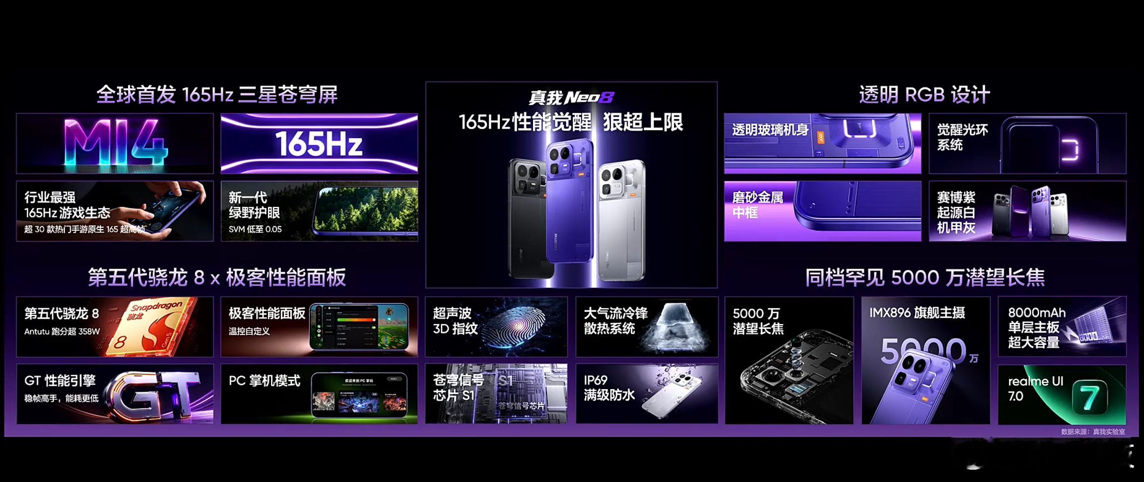 真我Neo8赛博紫,起源白,机甲灰三款配色,165Hz三星苍穹屏来了,三星M14