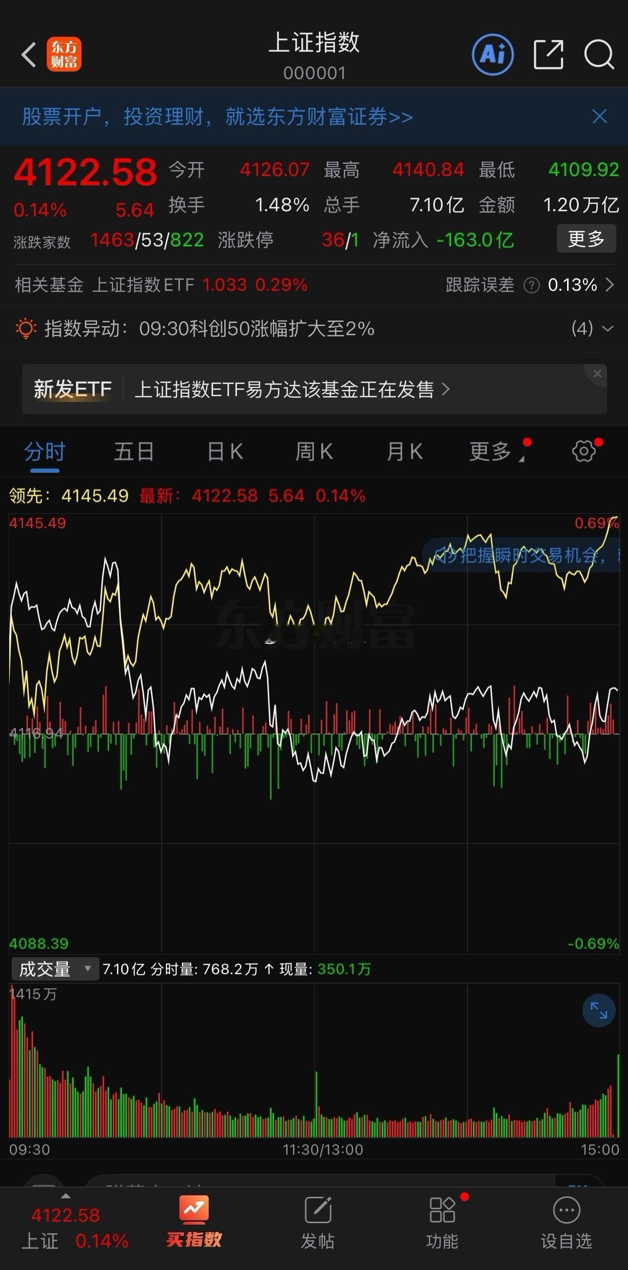 三大指数高开低走,震荡收涨,大盘收假阴真阳线,止跌企稳,震荡回升,展开反弹,仍有上行动力和动能,大盘中短期趋势逐渐转好,仍然是震荡行情,震荡加剧,幅度加大,重心上移,三大指数今天高开低走,震荡收涨,大盘收假阴真阳线,止跌企稳,震荡回升,展开60分钟级别反弹,大盘仍有上行动力和动能,中短期趋势逐渐转好,仍然是震荡行情,震荡加剧,幅度加大,重心上移,从盘面上看,市场沪深京三市全天成交额达到27166亿,较昨日放量926亿,连续第14个交易日突破2.5万亿。市场涨多跌少,上涨家数,3577家,下跌家数,1777家,看升价涨,量价齐升,多空指标再次转换,大盘整体趋势止跌企稳,震荡回升,中短期趋势逐步转好,重心上移,短期仍然是震荡行情为主,震荡加剧,幅度加大,进行技术性修复,各板块进行轮动补涨,大盘继续进行节奏性震荡运行,从技术指标上看,大盘60分钟指标转好,KDJ指标金叉向上,出头,MACD量能柱绿尽红出,但布林线狭窄,短期仍然是震荡行情,震荡加剧,幅度加大,逐渐使布林线通道形成上行通道并打开布林线开口,日线KDJ指标逐渐回暖,继续掉头向上,MACD量能柱绿毛仍然持续,但又缩短迹象,大盘出行回归布林线中轨之上运行,VR指标继续上行,大盘仍有上行动力和动能,中短期趋势转好,但仍然是震荡行情,震荡加剧,幅度加大,重心上移,截止2026年1月22日收盘,,沪指涨0.14%,收报4122.58点;深证成指涨0.50%,收报14327.05点;创业板指涨1.01%,收报3328.65点