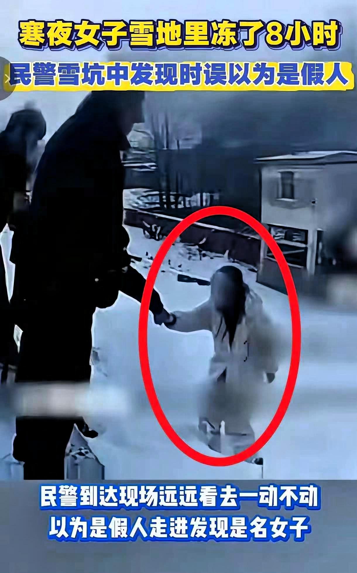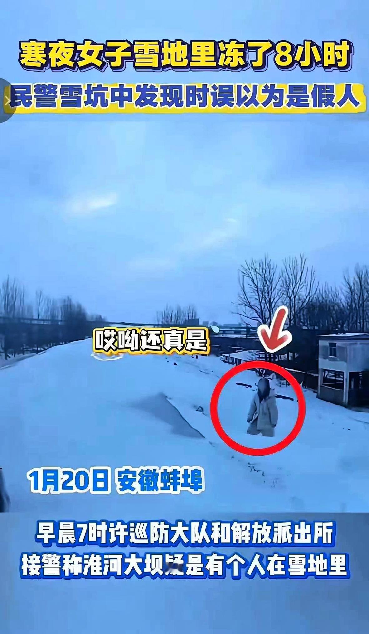 安徽,民警一大早发现雪坑里站着一个“假人”,走近一看才发现是一名活生生的女子,已经在雪地里冻了整整8小时,全身都变得僵硬,情况看着十分危急。 民警赶忙将女子拉出雪坑抬上警车,打开空调为她取暖,随后送医检查,所幸女子身体并无大碍。 不过有网友提醒的急救知识很关键:身体冻僵后不能立刻高温加温,因为低温状态下血管处于收缩状态,突然受热容易造成血管损伤,正确的做法是转移到常温环境,让身体缓慢复温,这是每个人都该了解的保命常识。 从女子的状态推测,她大概率是和人置气后离家出走,没带钱也没带手机,就这么硬扛着在雪坑里待了一夜。 生活里难免会有拌嘴吵架的时候,可拿自己的生命当赌注实在太不理智。你在寒风里冻得瑟瑟发抖、濒临危险时,或许气你的人根本没放在心上,就算最后争出对错,自己落下身体损伤,又能有什么意义? 中南部地区的冬天,落雪时气温不算极低,但化雪阶段会更冷,长时间待在户外,就算没到零下几十度,也容易出现冻伤情况。 女子能平安脱险,一方面是运气好,另一方面全靠民警及时发现和救助,这份寒冬里的援手,让人心里倍感温暖。 生命从来都经不起这样的试探,不管遇到多大的烦心事,都别跟自己的身体较劲。情绪上头时多想想后果,冷静下来就会发现,一时的冲动真的得不偿失。