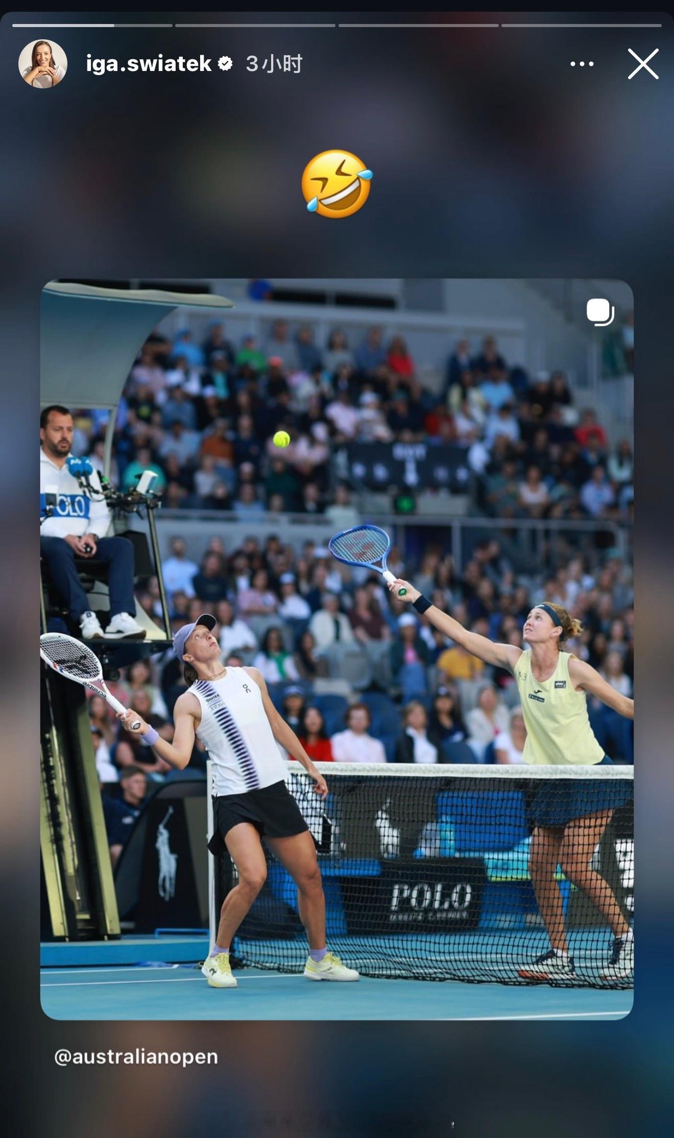 斯瓦泰克转发自己照片调侃自己。澳网2026这很澳网