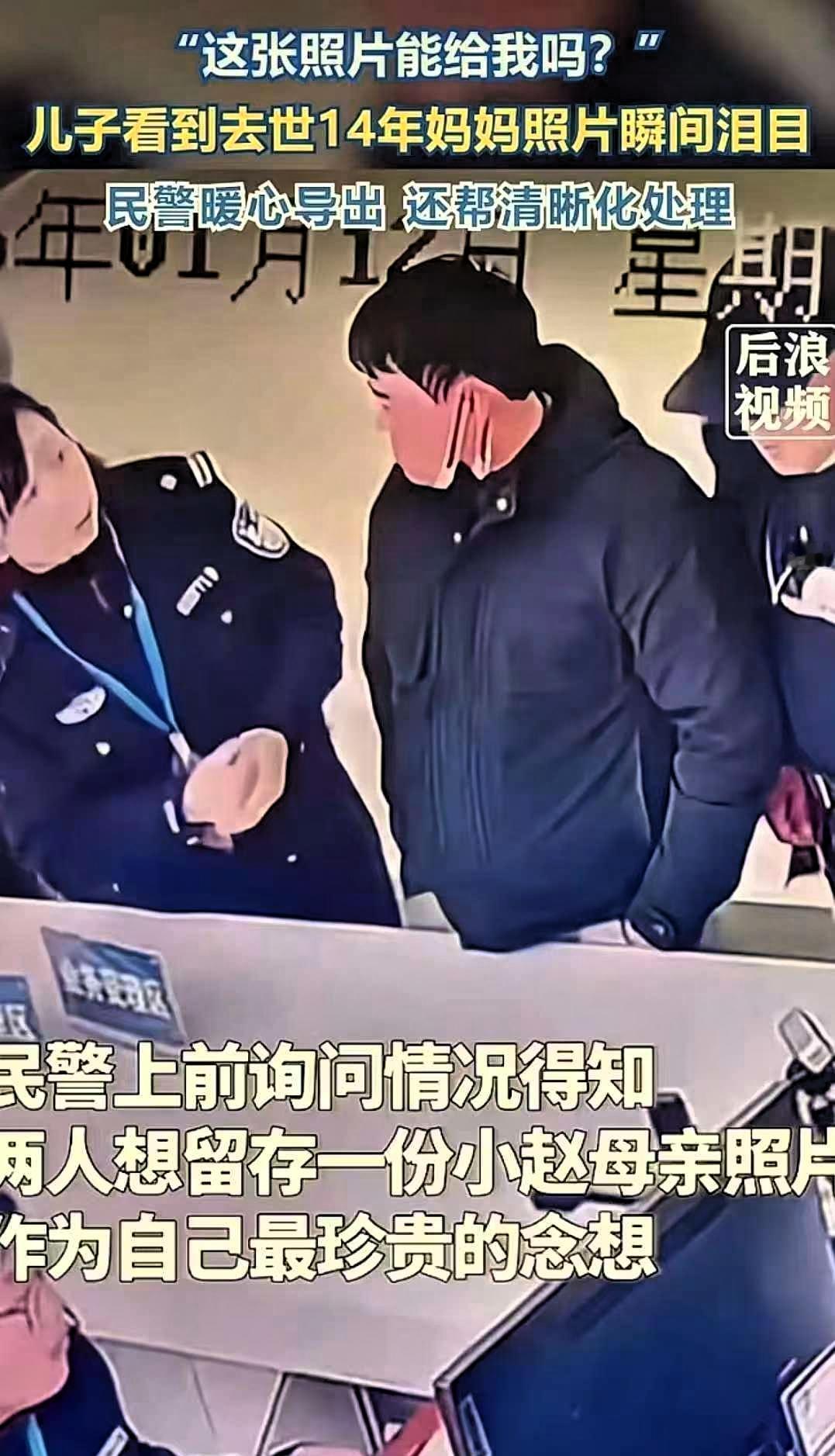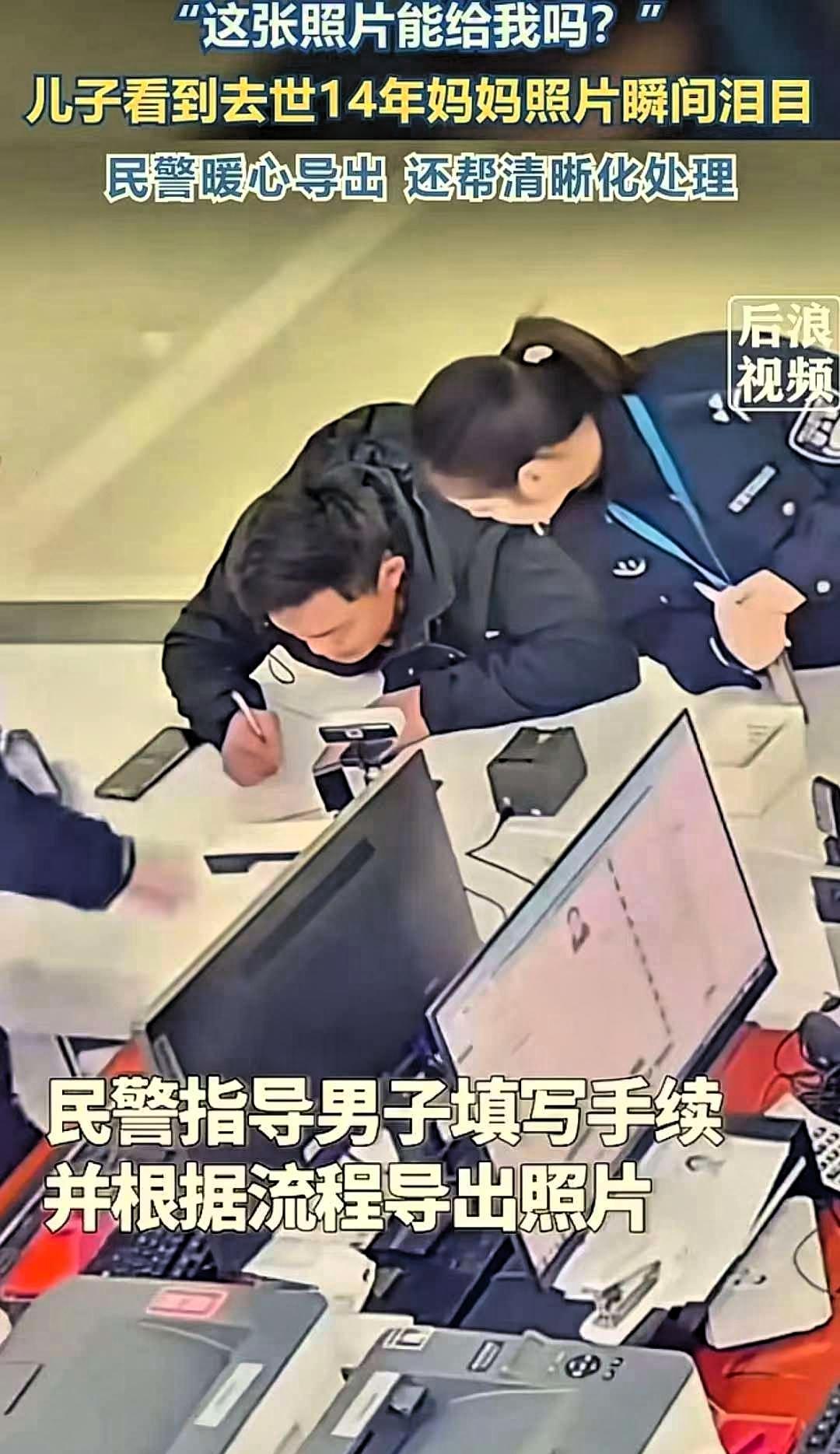 “看哭了!”安徽,一男生和父亲去户籍大厅办理变更业务,无意间抬头看向电脑屏幕,瞬间红了眼眶——屏幕上显示的,是已经离世14年的母亲的照片。 14年的时光里,家里留存的母亲照片本就不多,这份突如其来的“重逢”,让积压多年的想念一下子涌上心头。男生强忍着情绪,哽咽着向工作人员提出请求,问能不能把这张照片导出来带走,他心里其实没抱太大希望,毕竟这不属于常规业务范围。 没想到工作人员听完缘由后,当即点头同意,还耐心指导他填写相关表格,全程态度温和又认真。 更贴心的是,工作人员考虑到照片存放时间较长,可能会有些模糊,特意主动对照片做了清晰化处理,仔细调整好细节后,才郑重地把照片交到男生手中。 拿到照片的那一刻,男生再也忍不住,泪水模糊了视线,他紧紧攥着照片,一遍又一遍地向工作人员道谢,声音里满是感动。 常有人说政务办事讲规则,可规则的底色,从来都该有人情的温度。这位工作人员的举动,没有什么惊天动地的操作,只是在职责范围内多走了一小步,却帮一家人留住了最珍贵的念想,也让我们看到,平凡日常里的善意,最能打动人心。 我们总说人间值得,值得的从来不是什么轰轰烈烈的大事,而是这些藏在细节里的温柔与体谅。为这位有温度的工作人员点赞!愿每个心怀思念的人,都能被这样的小温暖治愈。