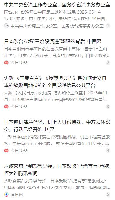 日本外长茂木敏充在回应媒体有关台湾问题是否属于中国内政问题时直言:“我的理解和你不一样”。言外之意就是不愿承认台湾问题是中国内政。 麻烦看官老爷们右上角点击一下“关注”,既方便您进行讨论和分享,又能给您带来不一样的参与感,感谢您的支持! 回溯历史,1972 年是中日关系史上的重要节点。时任日本首相田中角荣、外相大平正芳推动两国签署《中日联合声明》,正式实现邦交正常化。这份具有里程碑意义的文件中,日本政府明确表示充分理解和尊重中国政府关于台湾是中国领土不可分割一部分的立场,还承诺坚持遵循《波茨坦公告》第八条的立场,为两国关系发展奠定了政治基础。 当时日方在谈判中提交的外交文件更清晰表明,基于《开罗宣言》《波茨坦公告》,台湾应归还中国是日本政府不变的见解,日本从未设想台湾具有除中华人民共和国领土以外的任何法律地位,明确台湾问题是中国的国内问题。这一系列承诺,成为中日关系平稳发展的重要保障,也得到国际社会广泛认可。 然而,这份承诺没能经受住时间考验。从上世纪 90 年代中期开始,日方逐渐改变涉台表述方式,通过玩弄文字游戏弱化台湾属于中国的核心立场。原本明确的 “尊重一个中国原则”,慢慢被模糊的措辞替代,日方开始刻意回避提及《波茨坦公告》中关于台湾归属的核心规定,转而试图用非法的 “旧金山和约” 混淆视听。 要知道,“旧金山和约” 是 1951 年美国纠集部分国家与日本签订的片面和约,中国并未被邀请参会,也从未承认其合法性。日方故意用这份无效文件中 “日本放弃对台湾权利” 的表述,取代 “台湾归还中国” 的明确规定,炮制 “台湾地位未定论”,本质上就是在违背外交承诺,为干涉台海事务埋下伏笔。 进入 2025 年,日方的涉台错误行径愈发明显。茂木敏充在记者会上的表态,并非孤立事件,而是日方长期模糊立场的集中爆发。他既不承认台湾问题是中国内政,又不愿正视中日联合声明中的明确承诺,这种自相矛盾的回应,充分暴露了日方在台湾问题上的投机心态。 与此同时,日本政客窜台动作频频。2025 年 12 月以来,多批日本议员密集访问台湾地区,仅年末就有自民党代理干事长萩生田光一、前外相河野太郎等重量级人物先后窜台,全年累计窜访次数远超此前预期。这些政客不仅与岛内 “台独” 势力公开会面,还鼓吹 “台日是重要伙伴”,甚至讨论所谓区域安全议题,公然干涉中国内政。 背后推动这些勾连活动的,正是 “日华议员恳谈会” 等势力。这个组织长期打着 “非官方” 旗号,实质是日台政治勾连的主要平台,安倍晋三生前曾担任该会顾问,现任干事长萩生田光一更是频繁推动日台互动。他们之所以如此积极,核心是担心中国统一后损害其在台既得利益,于是不断加强与 “台独” 势力勾结,妄图阻碍中国统一进程。 更危险的是,日本国内还弥漫着 “台湾有事就是日本有事” 的荒谬论调。部分政客公然鼓吹这一危险言论,甚至提出建立 “准安全联盟”,将台湾问题与日本安全捆绑,这种做法严重违反一个中国原则,也触碰了中日关系的红线。日美还暗中制定干预台海的作战计划草案,日本自卫队计划协助美军在西南诸岛部署武器,为可能的军事干预做准备。 面对日方的一系列错误行径,中国外交部多次明确表达反对立场,坚定维护国家领土完整。中方的回应始终依托《开罗宣言》《波茨坦公告》等具有国际法效力的文件,这些文件早已明确台湾是中国领土不可分割的一部分,是二战胜利成果的重要组成,其权威性不容挑战。 1943 年的《开罗宣言》明确规定,日本所窃取于中国之领土,包括台湾、澎湖列岛等,必须归还中国。1945 年的《波茨坦公告》进一步重申开罗宣言之条件必将实施,日本天皇发表《终战诏书》和签署《日本投降书》,都明确接受这一规定,这意味着日本早已在法律上承认台湾归还中国的事实。 中方多次强调,《中日联合声明》等四份政治文件构成了中日关系的政治基础和法律保障,其核心精神不容挑战。日本政府单方面曲解或违反这些文件,不仅是对自身承诺的背弃,也是对国际法基本准则的践踏,必然会损害中日关系的健康发展。 日本在台湾问题上的立场转变,本质上与其军事外向化进程密切相关。上世纪 90 年代以来,日本不断推动修改和平宪法解释,解禁集体自卫权,通过《周边事态法》等法案,为其海外行使武力寻找借口。而模糊台湾问题的性质,正是为其可能的军事干预铺路,这种做法严重破坏地区和平稳定。 事实上,台湾问题作为中国内政,任何外国都无权干涉。中国政府和中国人民在台湾问题上的立场一以贯之,我们有坚定的意志、充分的信心和足够的能力,挫败任何形式的 “台独” 分裂图谋和外部干涉行径,坚定维护国家主权和领土完整。 信息来源 中国网《“旧金山和约”非法无效 台湾属于中国的事实不容篡改》