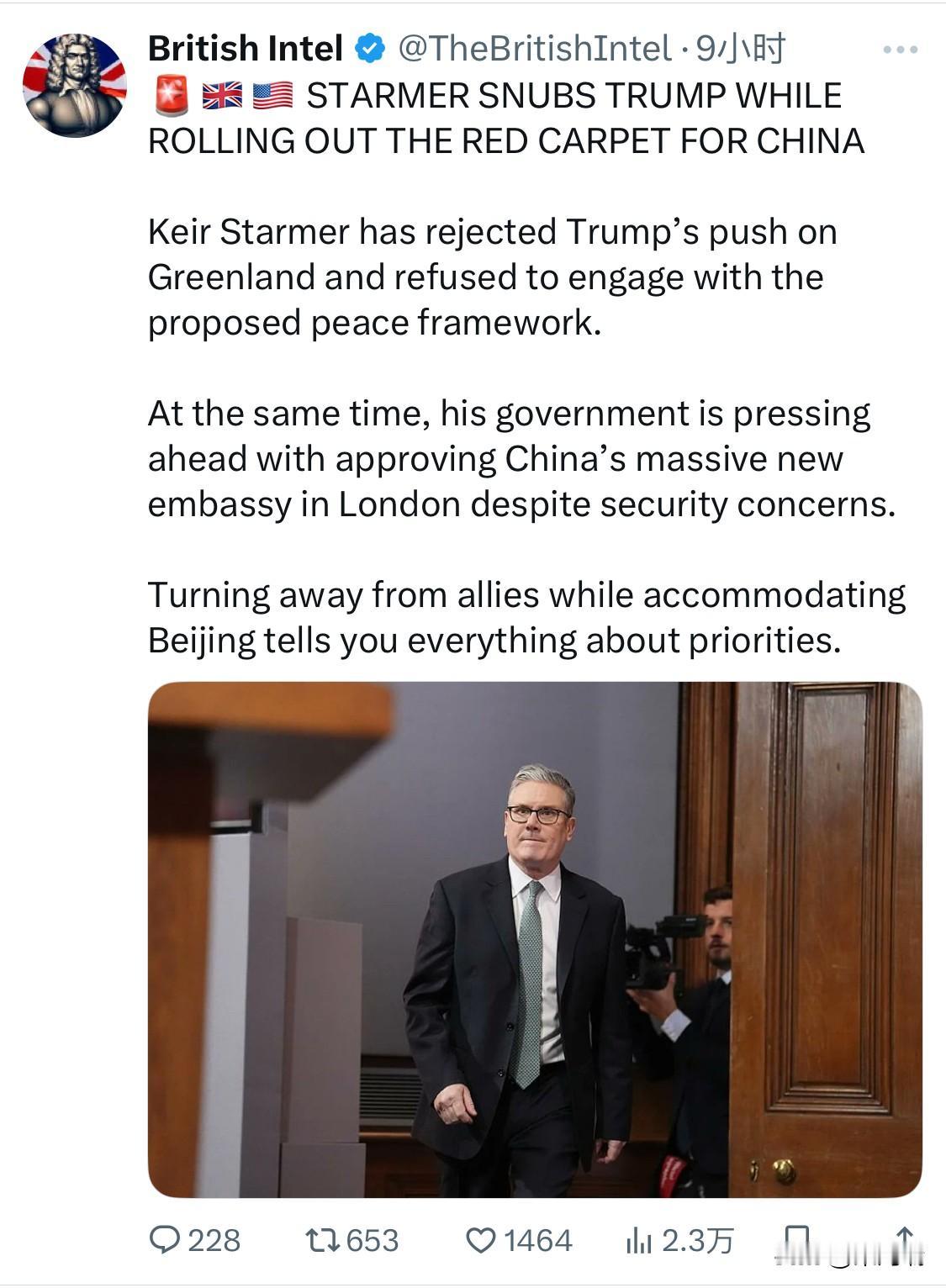 英国首相基尔·斯塔默(Keir Starmer)拒绝了唐纳德·特朗普关于格陵兰岛的提议,并继续推进中国驻伦敦新大使馆的建设计划。 斯塔默首相公开反对特朗普提出的以关税施压盟国出售格陵兰岛的举动,称其“完全错误”,并警告贸易战不符合任何人的利益。他强调,格陵兰岛的未来应由格陵兰岛人民和丹麦王国共同决定,英国不会在关税威胁下放弃这一原则。斯塔默呼吁盟国之间通过“平静讨论”解决分歧,并安排了与丹麦首相的会谈。 英国政府已正式批准中国在伦敦市中心建造其欧洲最大规模新大使馆的计划,尽管该决定曾被当地议会以安全为由驳回。反对者(包括其他政党和当地居民)担心,这个位于皇家铸币厂旧址(Royal Mint Court)的大型建筑群可能会被用作间谍活动的基地,并对附近的敏感光缆构成威胁。 英国安全事务大臣表示,情报机构(MI5和GCHQ负责人)全程参与了审批程序,并制定了“适当”的国家安全缓解措施,以确保风险得到管理。 这一决定被视为斯塔默政府平衡国家安全担忧与寻求与北京保持外交对话和贸易关系的举措。预计此举将为斯塔默今年晚些时候的中国之行铺平道路。