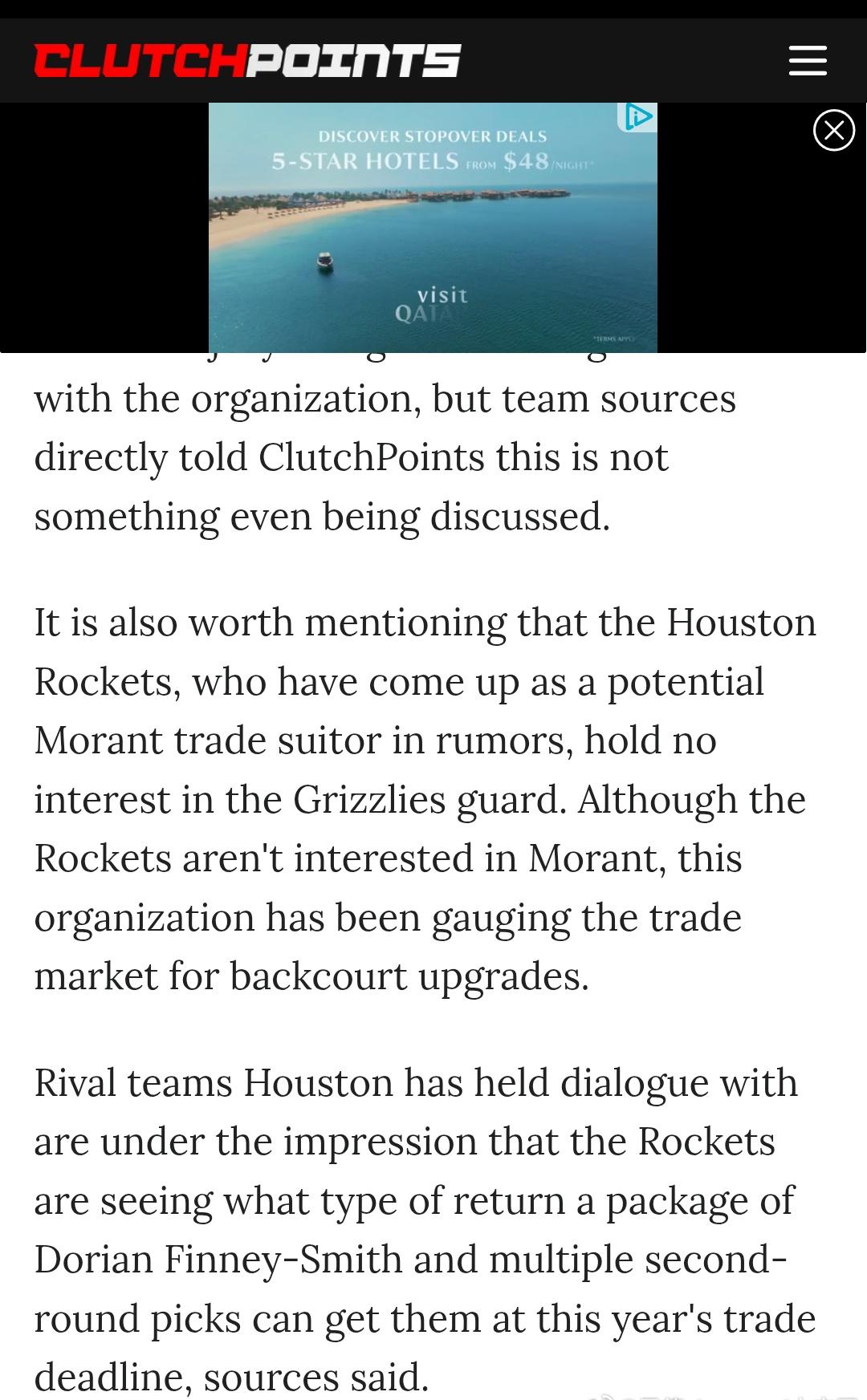 和火箭讨论过交易的球队表示:火箭计划升级后场并正在评估: 多里安·芬尼-史密斯 + 多个次轮 能换来什么级别的后卫。 休斯顿火箭休斯顿火箭