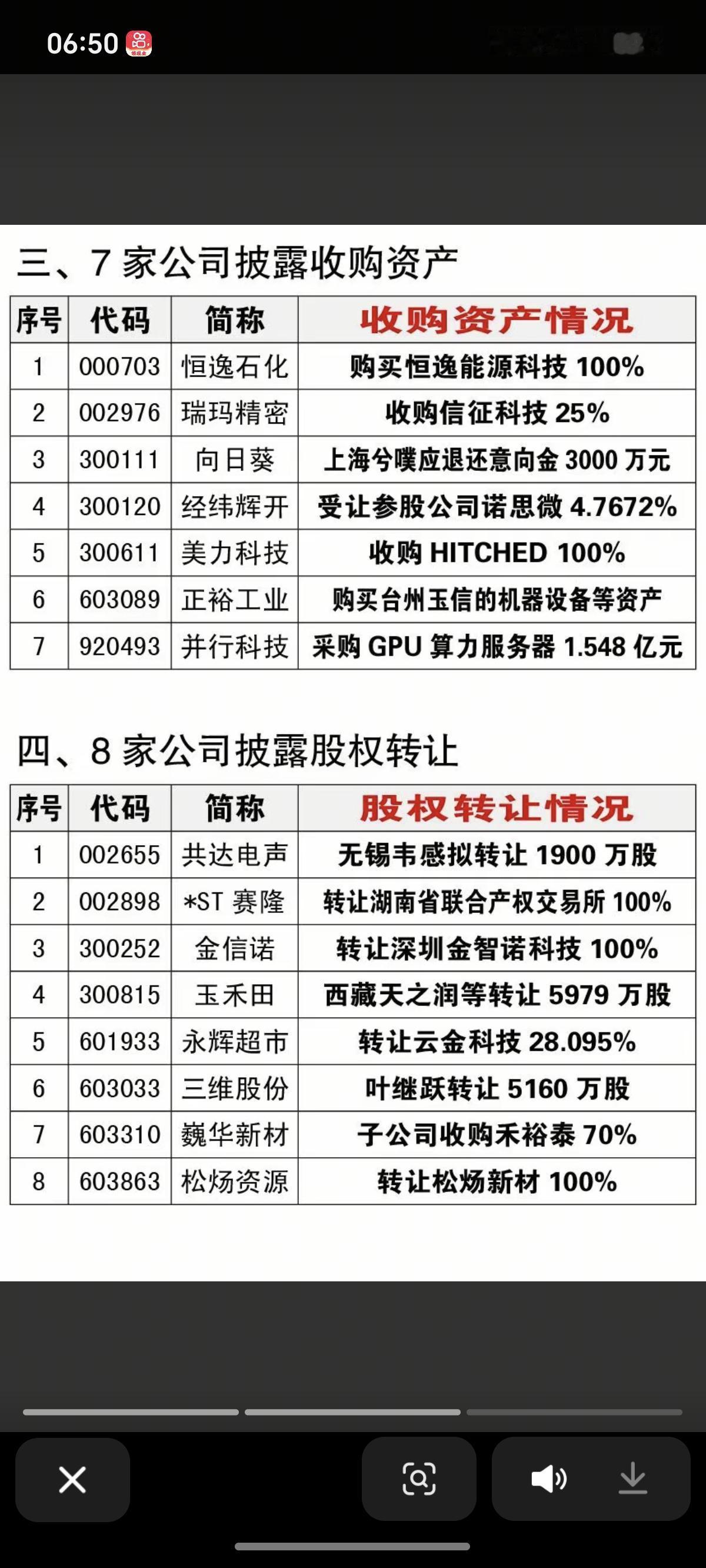 1.23周五 最新:资产重组、实控人变更,股权转让公告! 9家公司资产重组,7家收购资产,8家股权转让,1家实控人变更