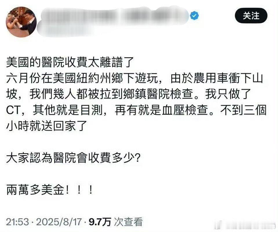 🔻美国斩杀线名不虚传。🔻血压检查+ct,医院收费2万美金。美国政府首次回应斩