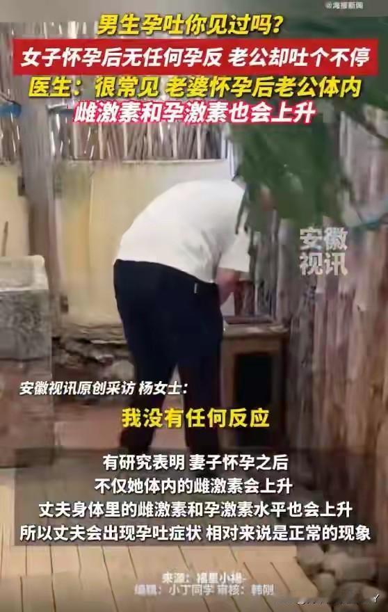 听说有代孕的,头回听说有代吐的! 海报新闻报道,1月22日,山西一位杨女士的经历,让不少人开了眼界。她怀孕后自己没什么反应,丈夫反倒天天恶心呕吐,闻着油烟味都直犯晕。 头回怀孕的她心里发慌,拉着老公去医院检查,琢磨着是不是身体出了啥毛病。医生却见怪不怪:这情况正常。 医生解释,妻子怀孕后,丈夫体内激素可能跟着变,尤其是雌激素和孕激素水平上升,身体敏感的人就会出现类似孕吐的反应。医学上早有观察记录,不算啥稀罕事。 杨女士说,她怀孕刚俩月,老公就先开始吐,甚至还是老公先察觉到她可能怀孕了。这事儿一传开,网友们炸开了锅。“常见吗?我头回听说男的也会孕吐!” 确实,咱们只知道孕妇激素波动会犯恶心,哪听过准爸爸也来这么一出?其实这叫“同感症”,就是丈夫在妻子怀孕时,会有相似的生理反应。不算普遍,却也不是孤例。 想想也挺有意思,女人怀孕要经历孕吐、水肿、腰酸背痛,本是独自承受的辛苦,没想到有些丈夫会“感同身受”。杨女士的老公吐得昏天暗地时,怕是更能体会妻子的不易。 这种“共患难”,倒成了夫妻间特殊的纽带。老话讲“夫妻同心,其利断金”,没想到在生理上也能体现。医生说,这跟情感联结分不开。 夫妻俩感情越深,丈夫对妻子的状态越上心,身体就越可能出现这种“共鸣”。就像心里装着事儿,身体也会跟着“表态”。有人觉得这是心理作用,可激素变化是实打实的。 准爸爸们既期待新生命,又可能焦虑未来的责任,这种复杂情绪说不定就影响了内分泌。身体用“孕吐”的方式告诉你:你不是旁观者,是和妻子一起在迎接这个孩子。 杨女士的经历,也给准爸妈们提了个醒。怀孕不是女人一个人的事,丈夫的紧张、焦虑甚至生理反应,都该被看见。别觉得“大男人吐什么吐”,这恰恰说明他把这份责任放在了心上。 家人多些理解,陪着一起调整,孕期才更有温度。网友们的好奇也能理解,毕竟这事儿听起来新鲜。可细想之下,这不就是爱的另一种模样? 平时或许是大大咧咧的糙汉子,到了妻子怀孕时,连身体都变得敏感起来。这种藏在生理反应里的在乎,比说多少句“我心疼你”都实在。 其实生活里的“同感”不止这一种。妻子难过时,丈夫也跟着揪心;老公压力大时,妻子也睡不好觉。感情深了,就成了彼此的“情绪感应器”。怀孕时的“男版孕吐”,不过是把这种联结具象化了。 医生说不用太担心,这种反应通常会随着孕期推进慢慢消退。但这段共同“遭罪”的日子,说不定会成夫妻俩最难忘的回忆。等孩子长大了,跟他说“你爸当年比我还能吐”,想想都觉得暖心。 所以啊,别觉得这事儿奇怪。它藏着的是夫妻间的默契,是血脉相连的开始。准爸爸们要是也遇上这情况,别不好意思,这说明你是个走心的好丈夫。 准妈妈们也多体谅,他的“孕吐”里,藏着和你一样的期待与牵挂。山西这位杨女士的故事,原来爱到深处,连生理反应都能同步。这种带着烟火气的温情,不就是婚姻里最动人的模样吗?(消息来源:海报新闻)