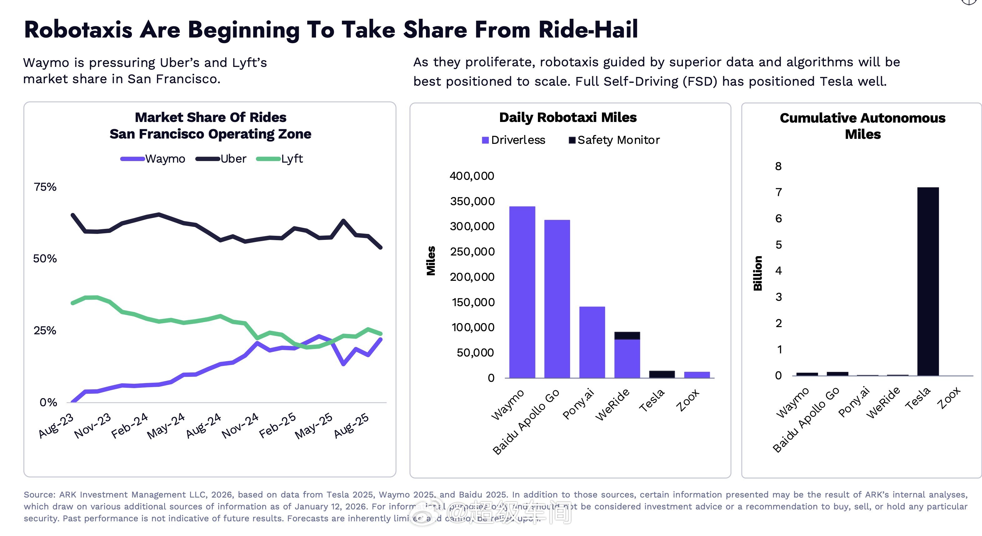 来自“Ark Invest”新研究报告中的有趣图表。能看到特斯拉 累计特斯拉fsd “自主里程”一骑绝尘