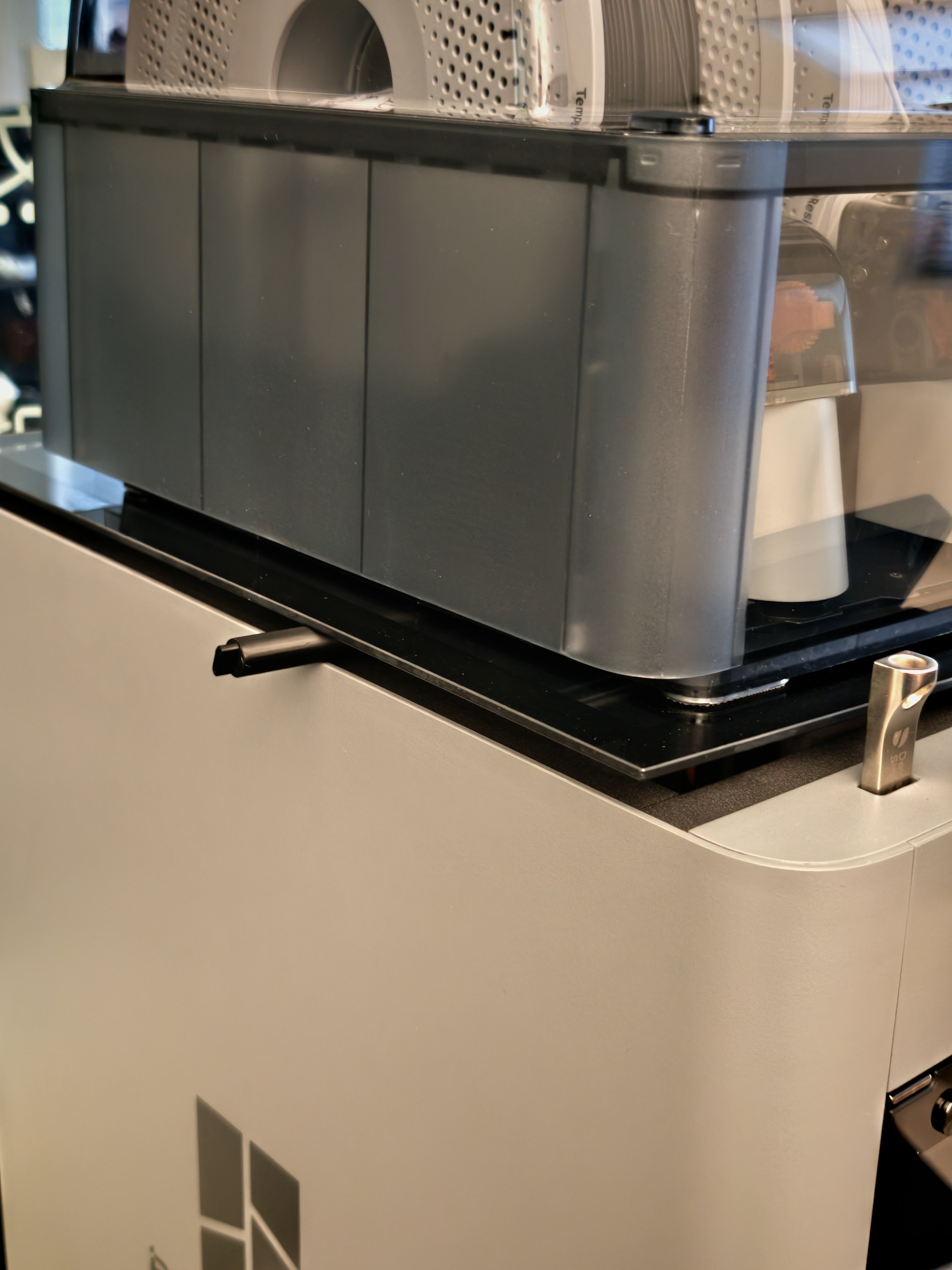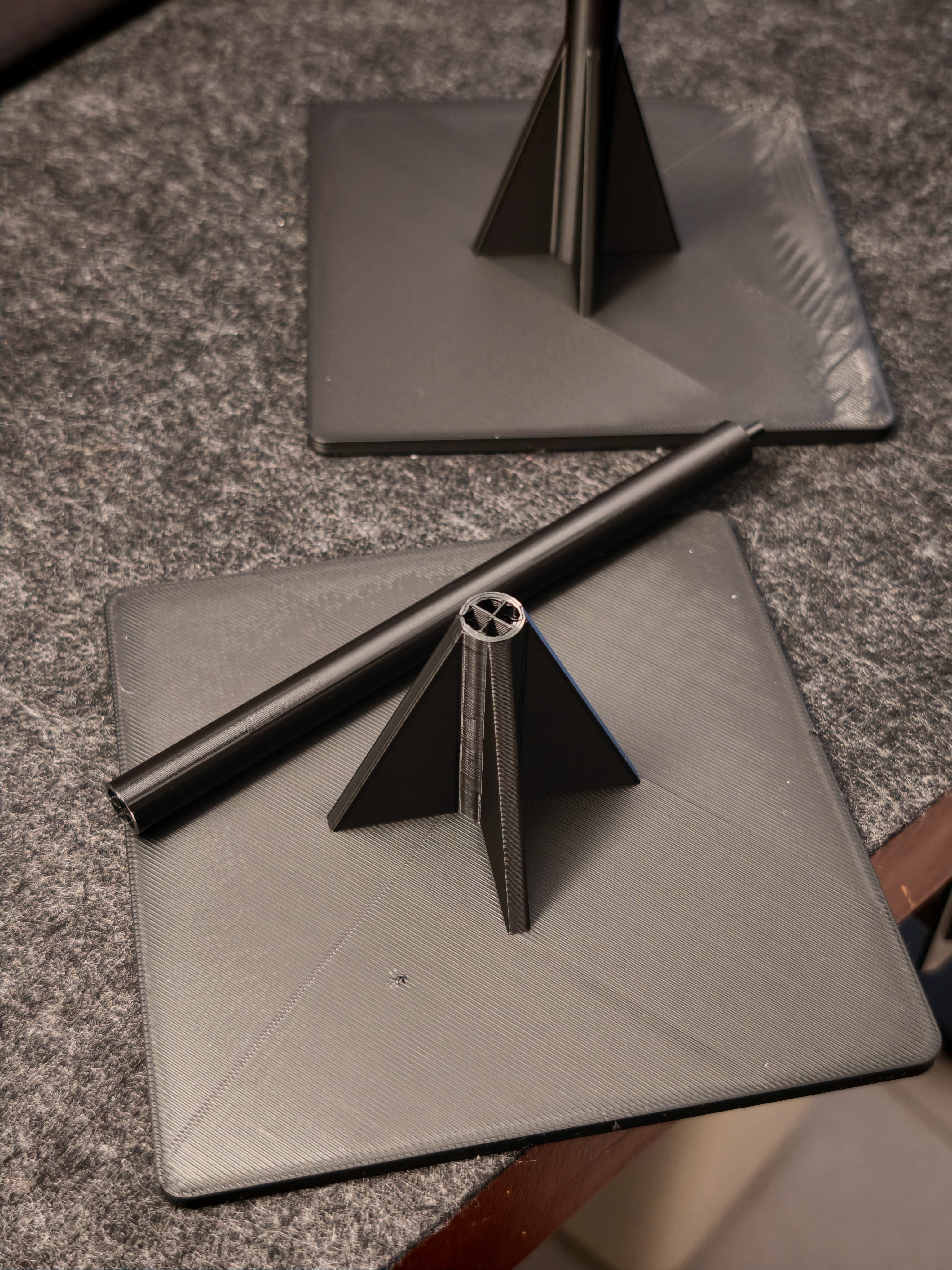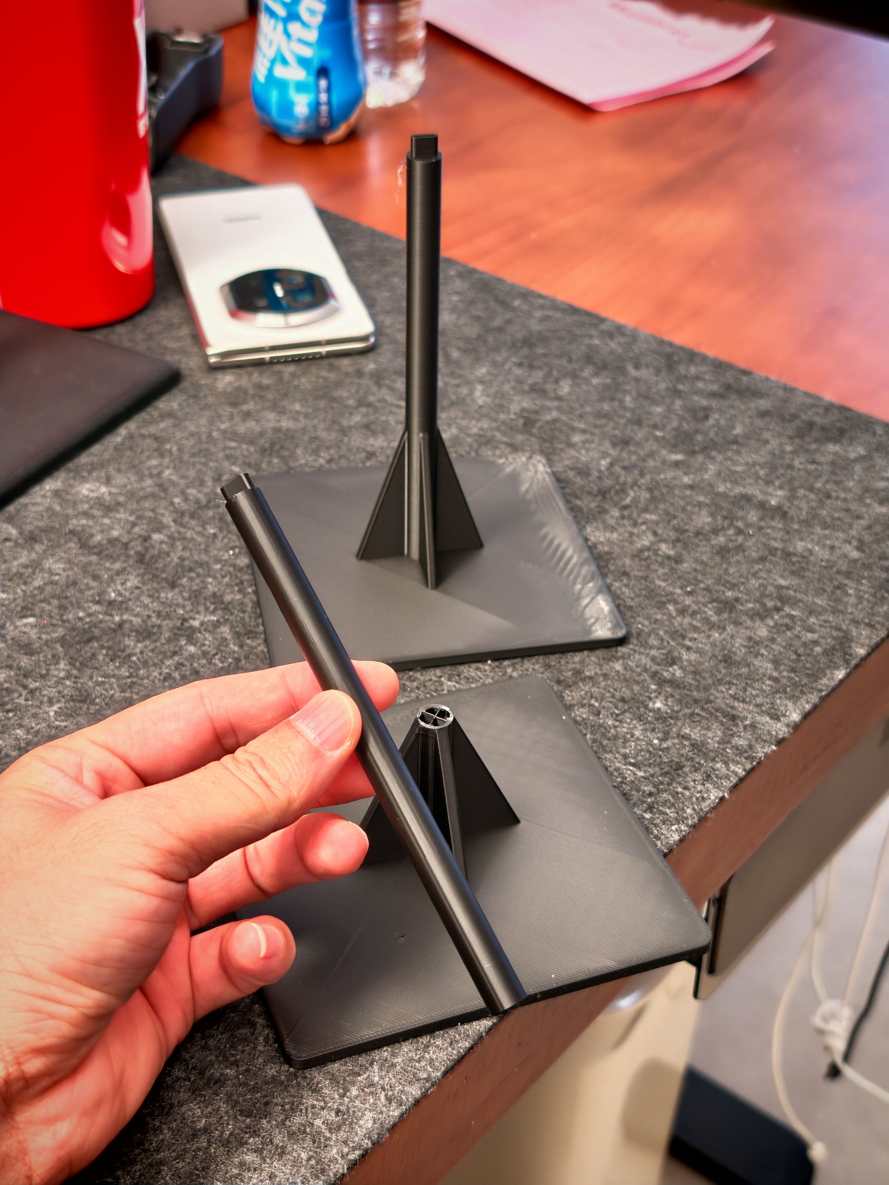昨天用拓竹3D打印机,打印了两个手机拍摄支架。结果回到家,我又操作了一些打印机,里边托盘自动升高,结果把打印好的东西给顶坏了。我用手机看监控还纳闷儿,顶出去之后怎么能断呢?结果到办公室一看,夹在侧边给掰断了。看后面两张图的效果还不错