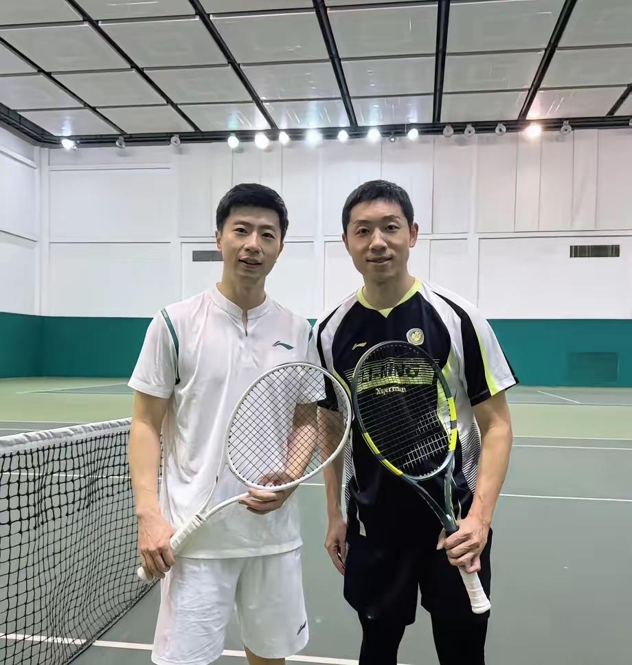 许昕更新:天天说球场见,tennis也是球场见吧——许昕与马龙一起打网球🎾啦! 马龙到上海做活动, 顺便和许昕相聚一下,挺好, 这两个人现在可以快乐生活, 快乐网球🎾, 经历了风风雨雨, 功成名就的生活状态就是这样简单而 惬意😌…… 人生努力的意义和目标就在于此吧! 马龙 许昕再训练训练 ,收拾一下, 准备网球闪耀洛杉矶吧, 不知道这网球可不可以背后击球, 网球🎾其实有很多技战术和乒乓球 相似,落点变化, 发球变化, 相信会打乒乓球的人, 打网球差不了吧! 马龙和许昕的小孩合影很开心, 对小孩子都有爱心💗……